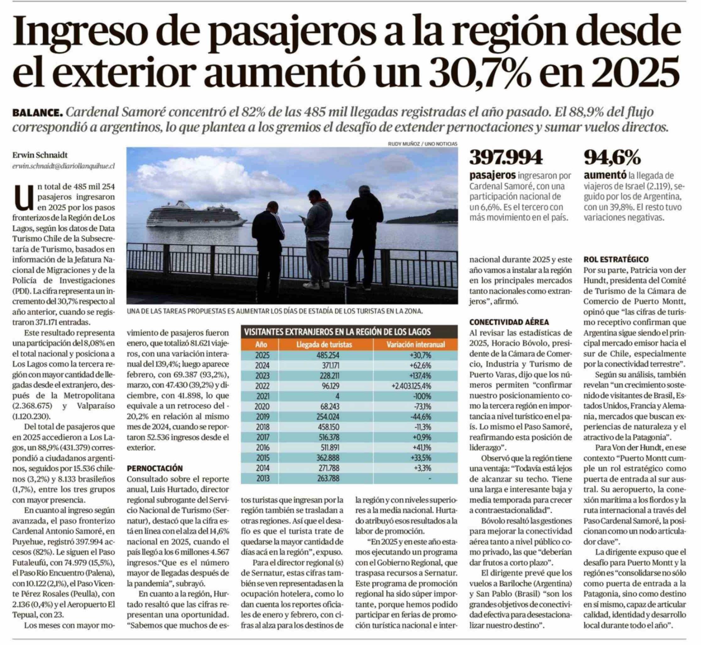 Ingreso de pasajeros a la región desde el exterior aumentó un 30,7% en 2025