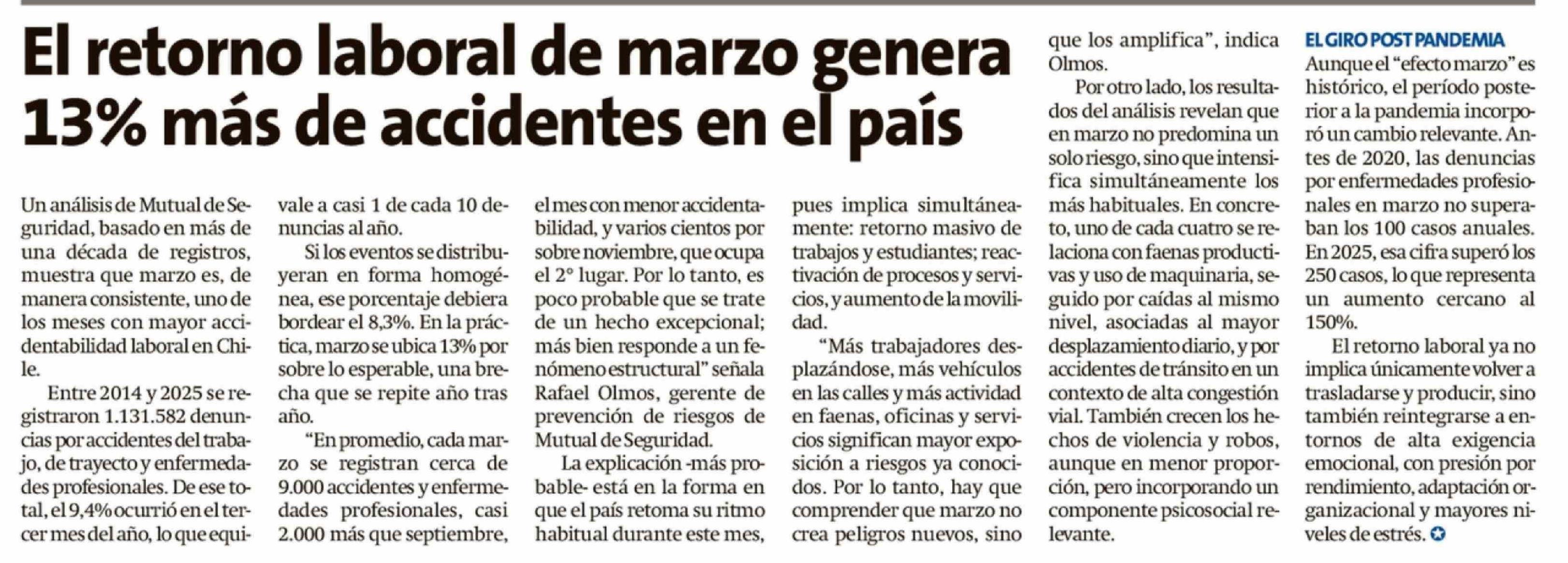 El retorno laboral de marzo genera 13% más de accidentes en el país