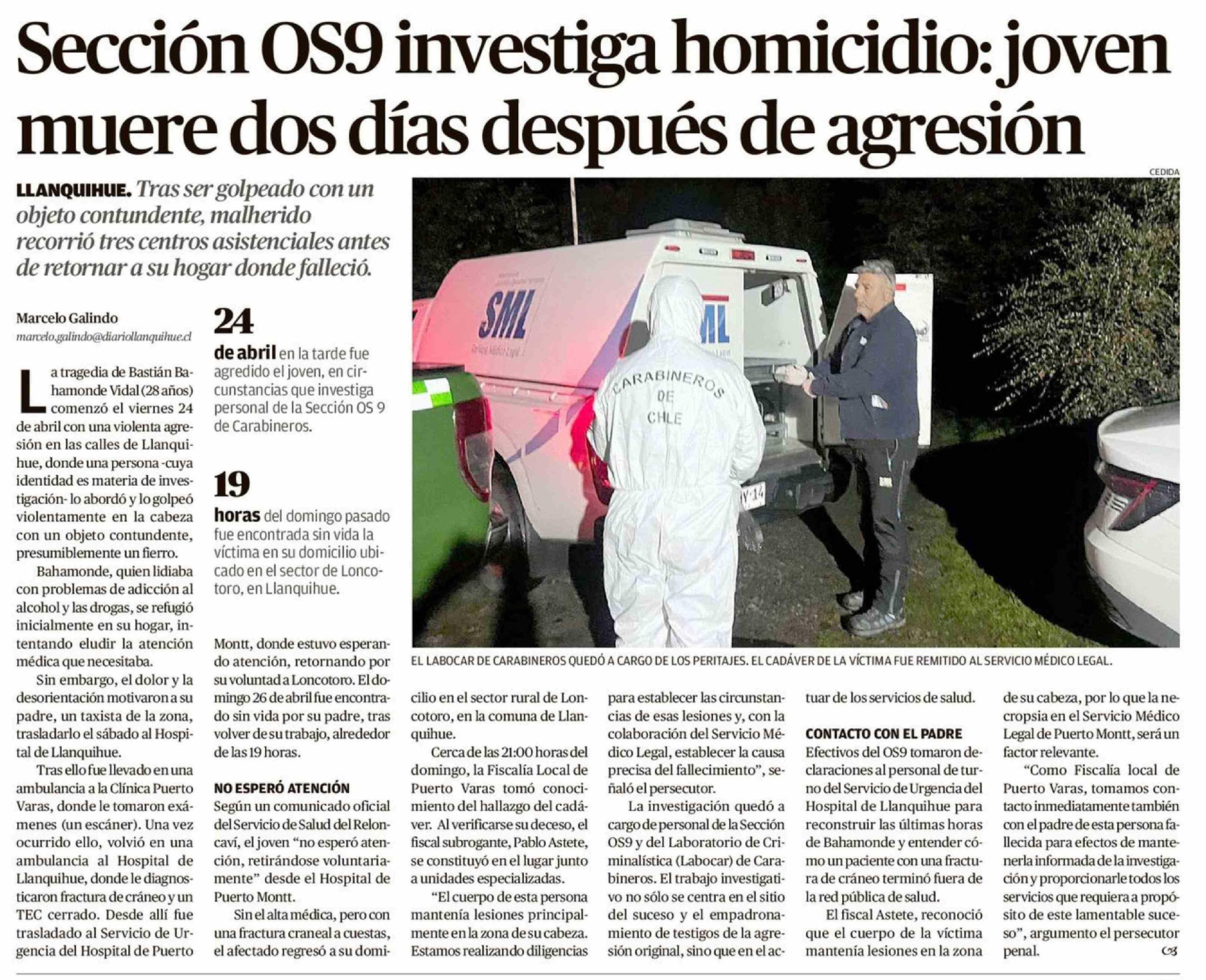 Sección OS9 investiga homicidio: joven muere dos días después de agresión