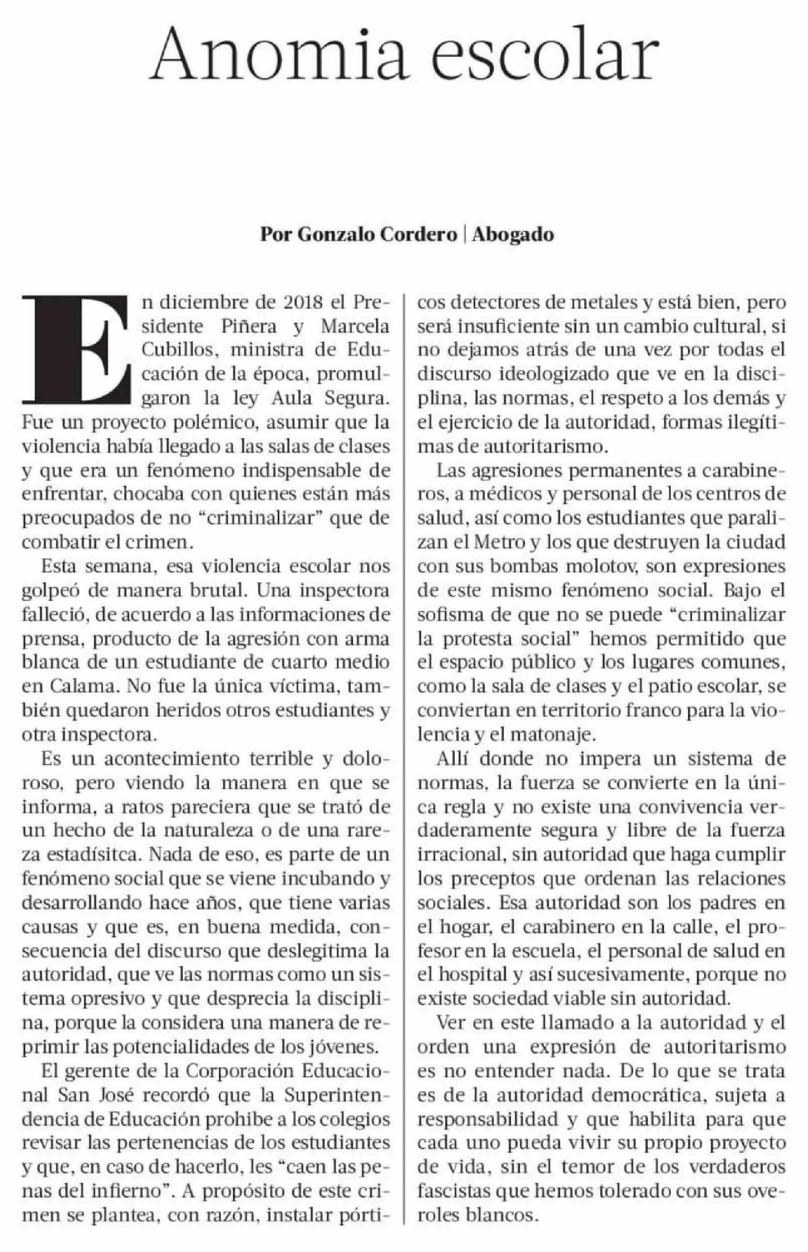 Columnas de Opinión: Anomia escolar