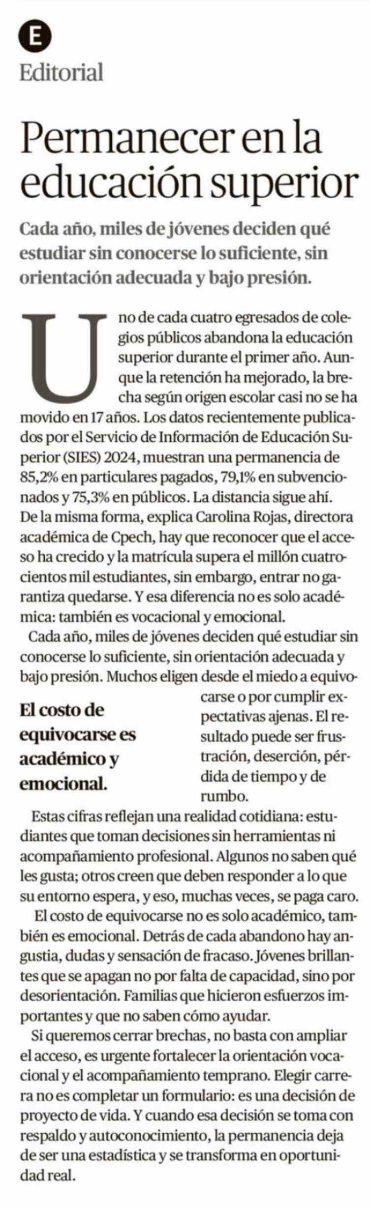 Editorial: Permanecer en la educación superior