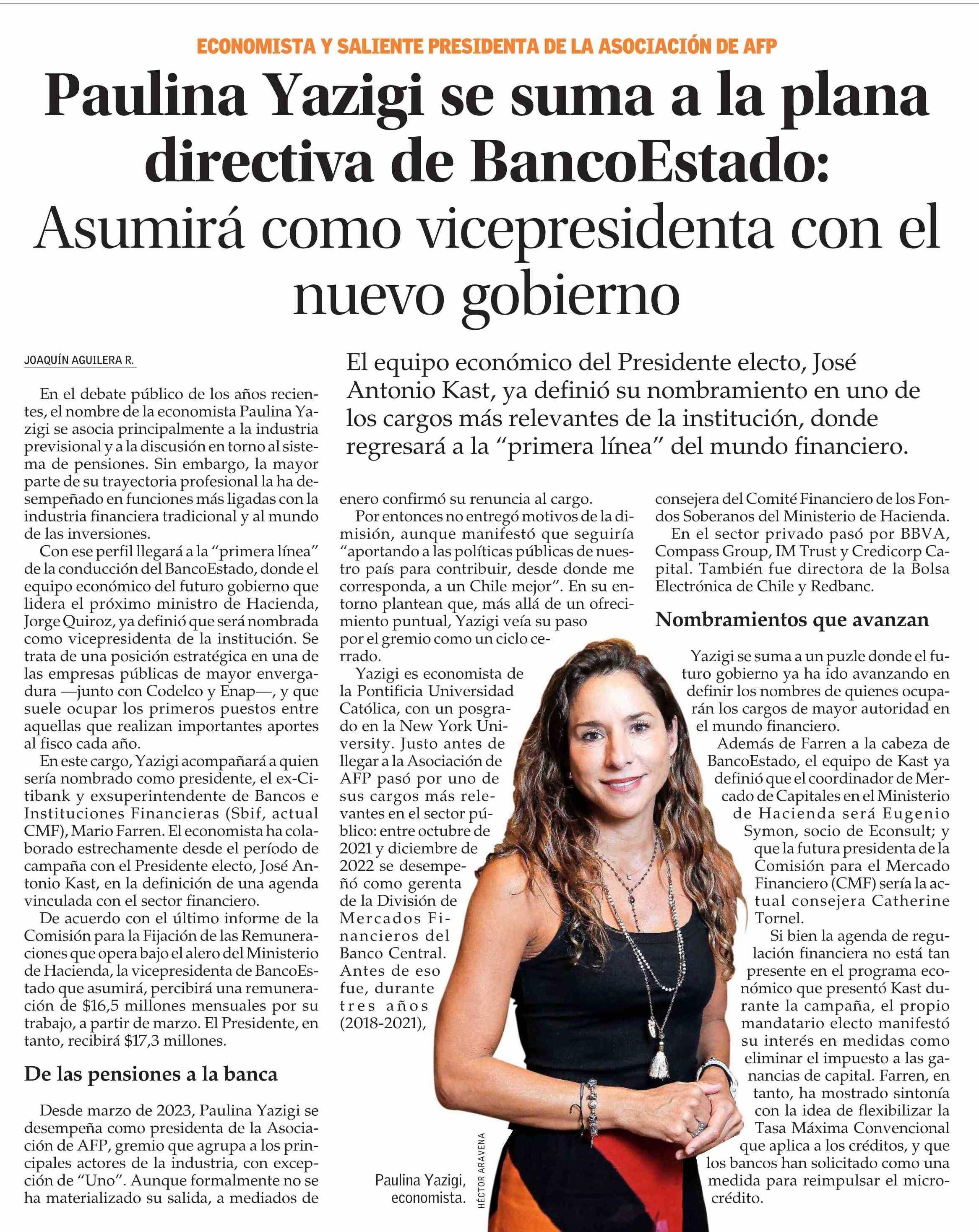 Paulina Yazigi se suma a la plana directiva de BancoEstado: Asumirá como vicepresidenta con el nuevo gobierno
