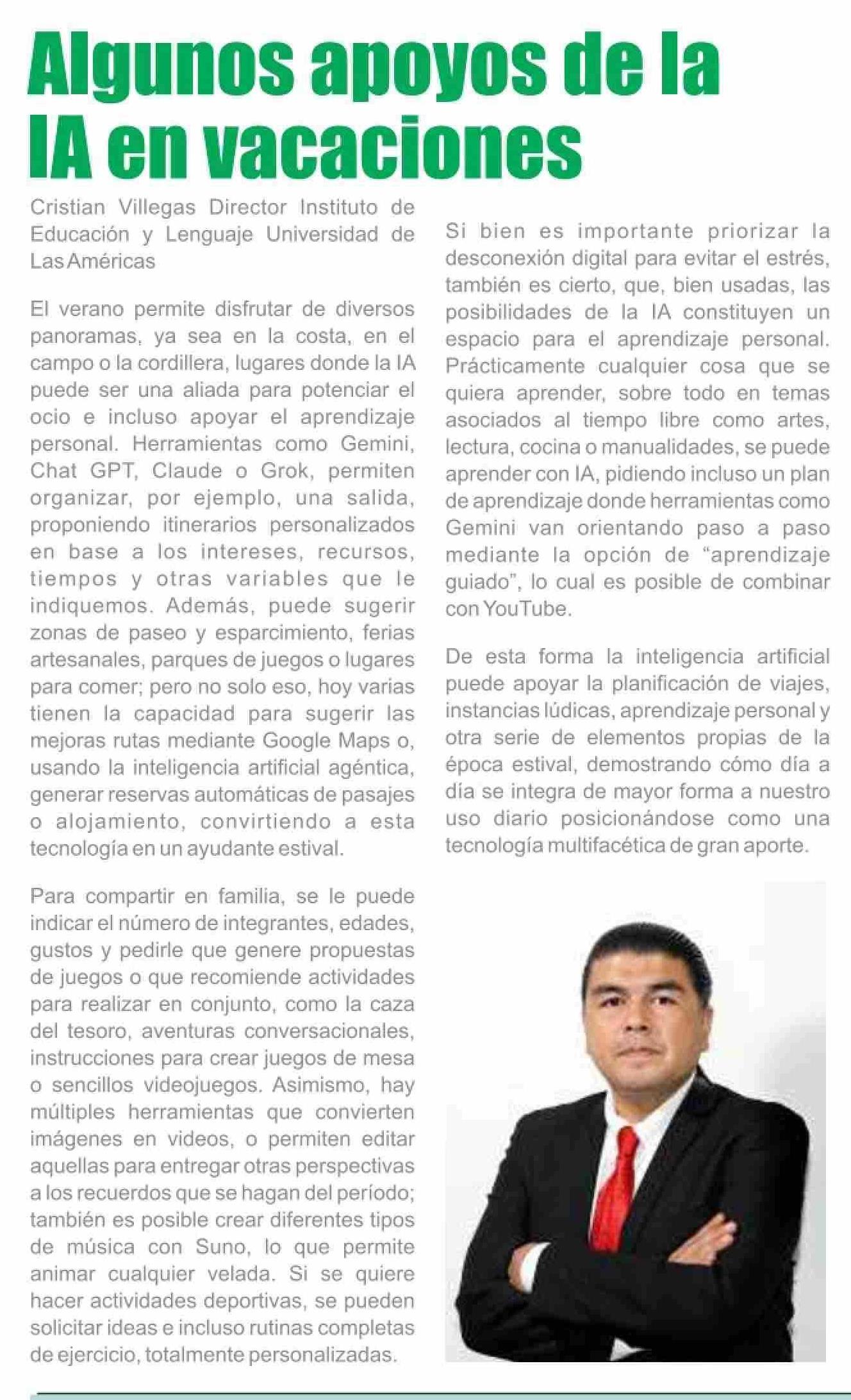 Columnas de Opinión: Algunos apoyos de la IA en vacaciones