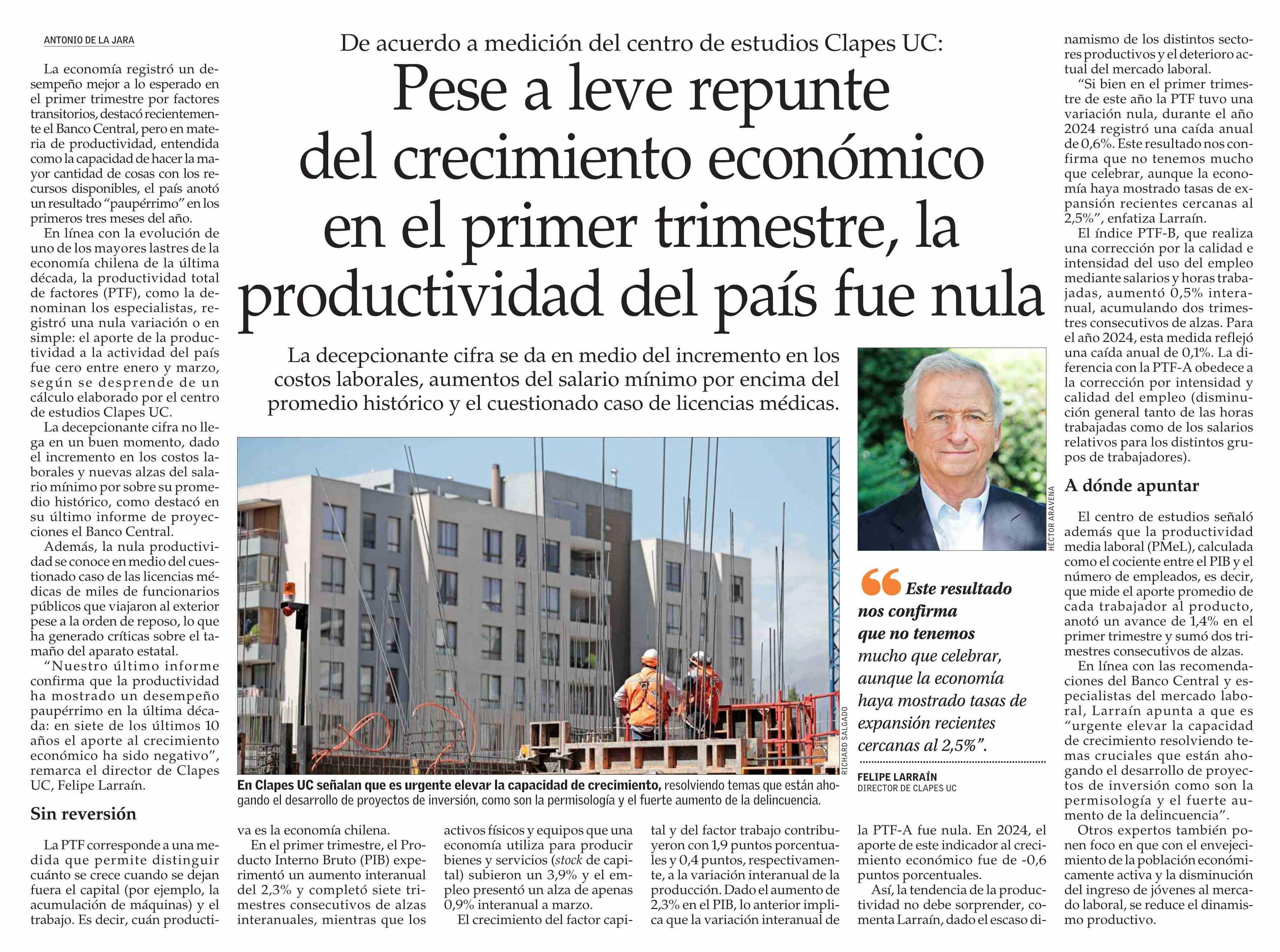 Pese a leve repunte del crecimiento económico en el primer trimestre, la productividad del país fue nula