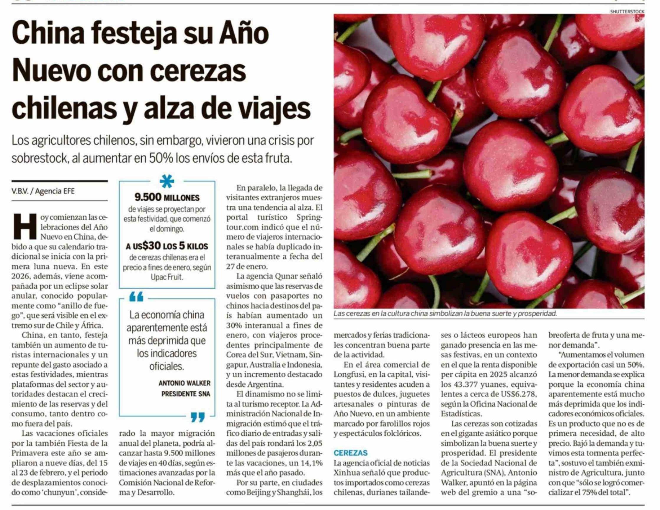 China festeja su Año Nuevo con cerezas chilenas y alza de viajes