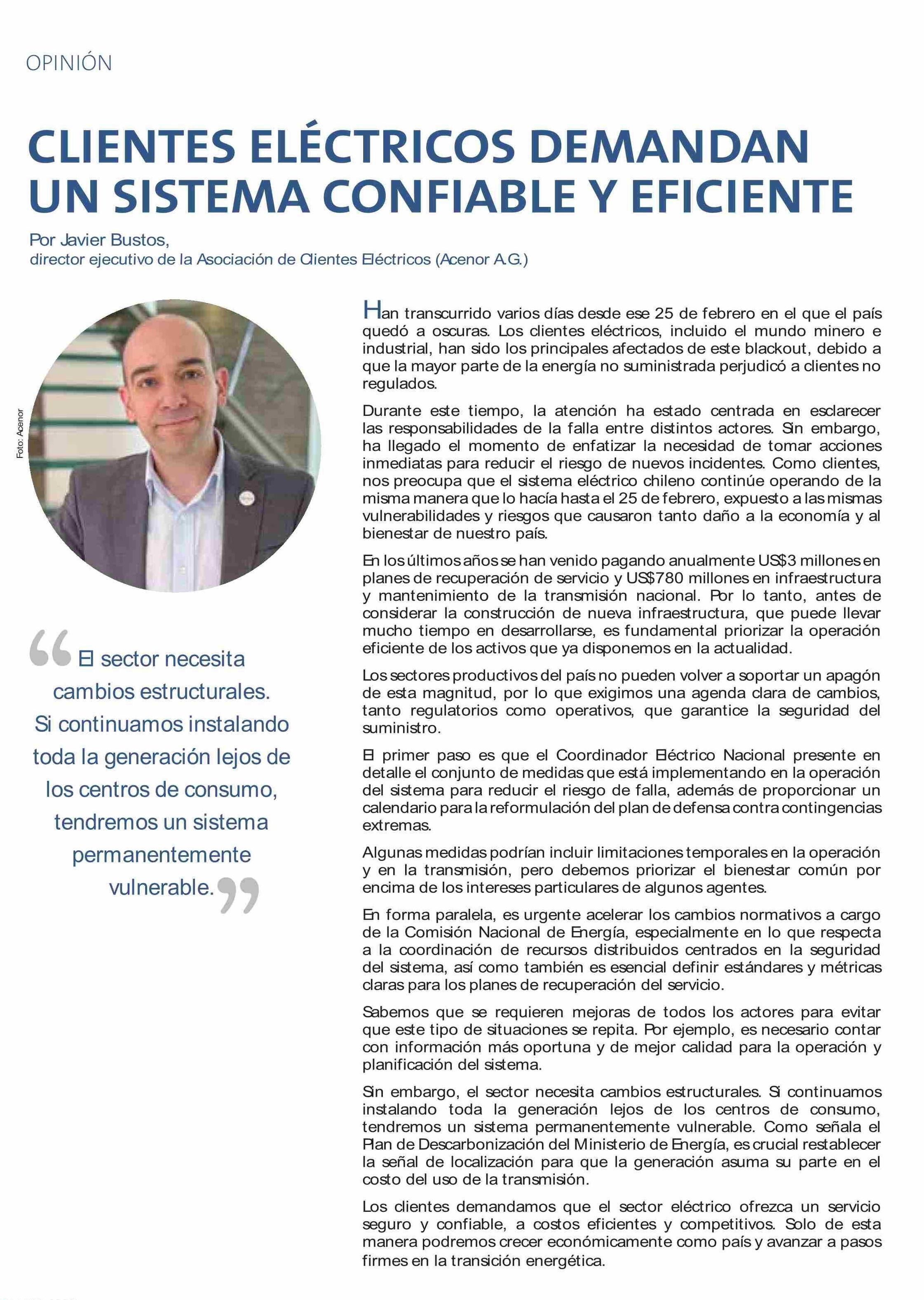 COLUMNAS DE OPINIÓN: CLIENTES ELÉCTRICOS DEMANDAN UN SISTEMA CONFIABLE Y EFICIENTE