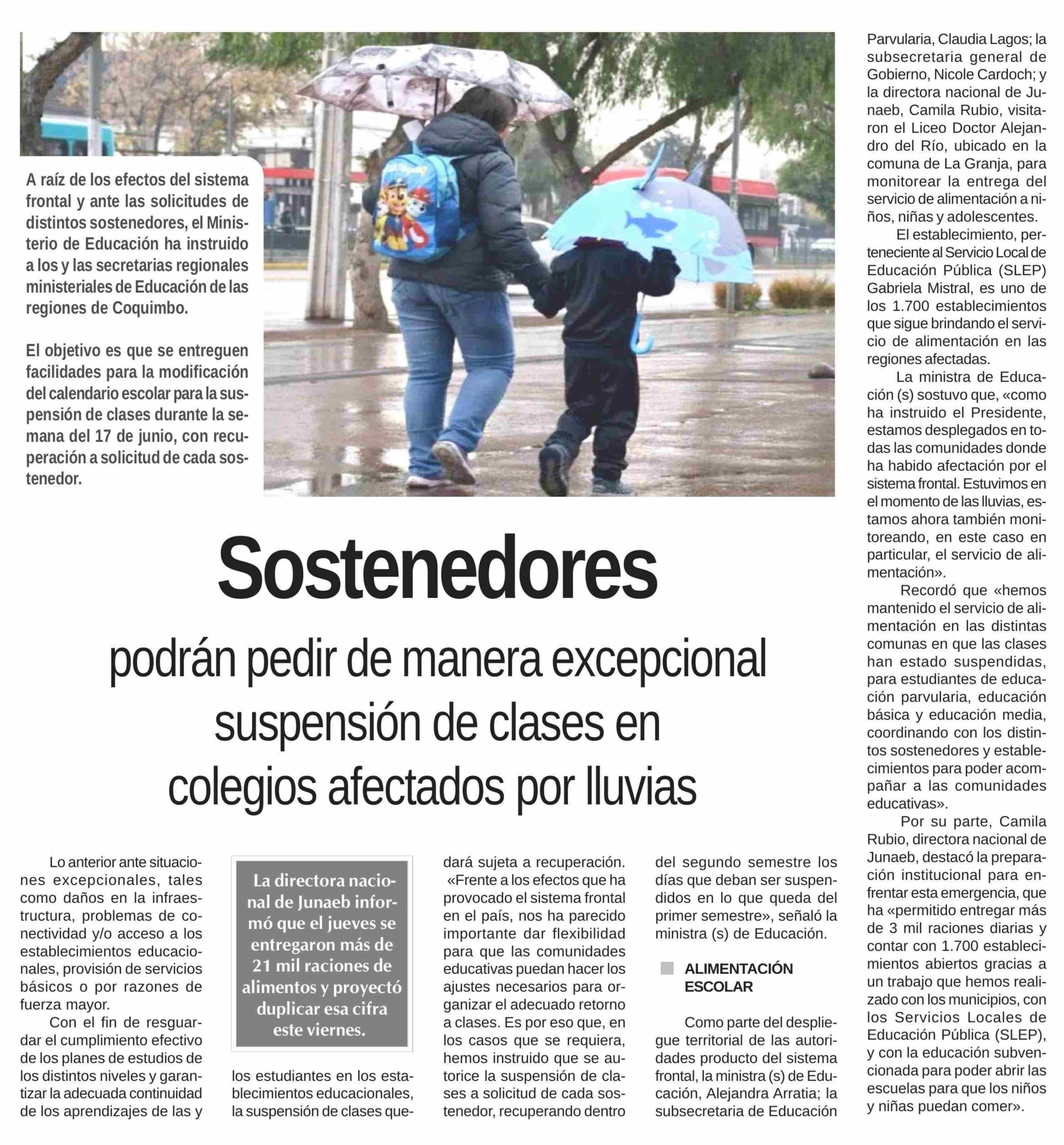 Sostenedores podrán pedir de manera excepcional suspensión de clases en colegios afectados por lluvias
