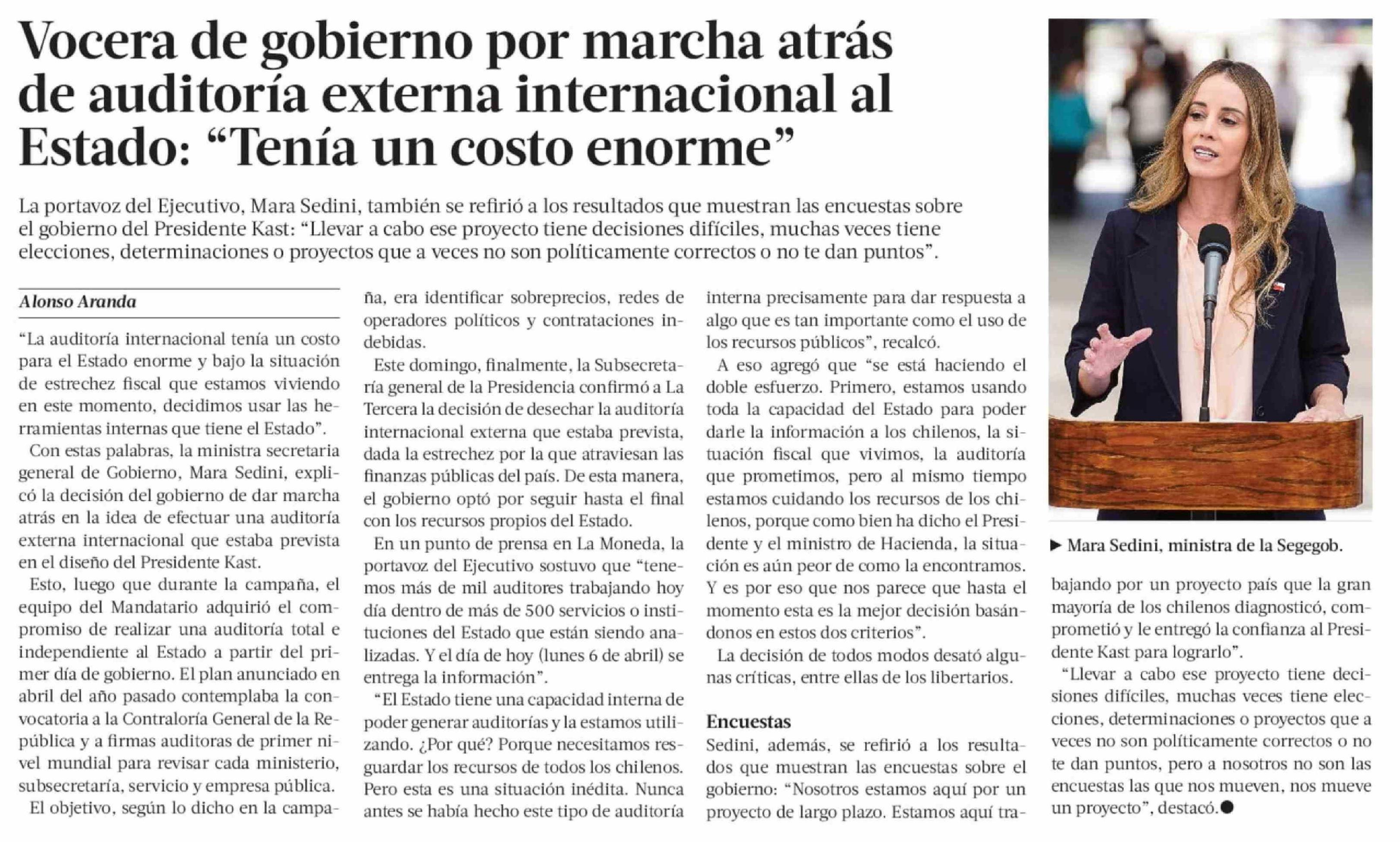 Vocera de gobierno por marcha atrás de auditoría externa internacional al Estado: "Tenía un costo enorme"