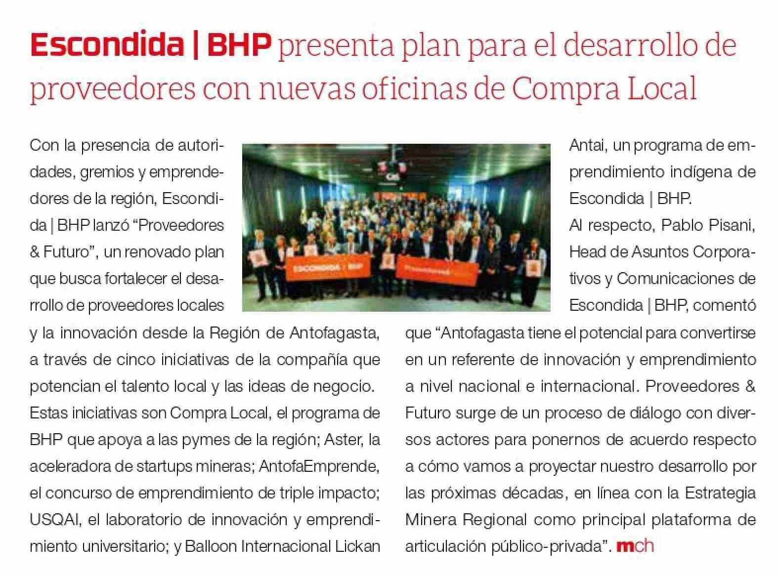 Escondida BHP presenta plan para el desarrollo de proveedores con nuevas oficinas de Compra Local
