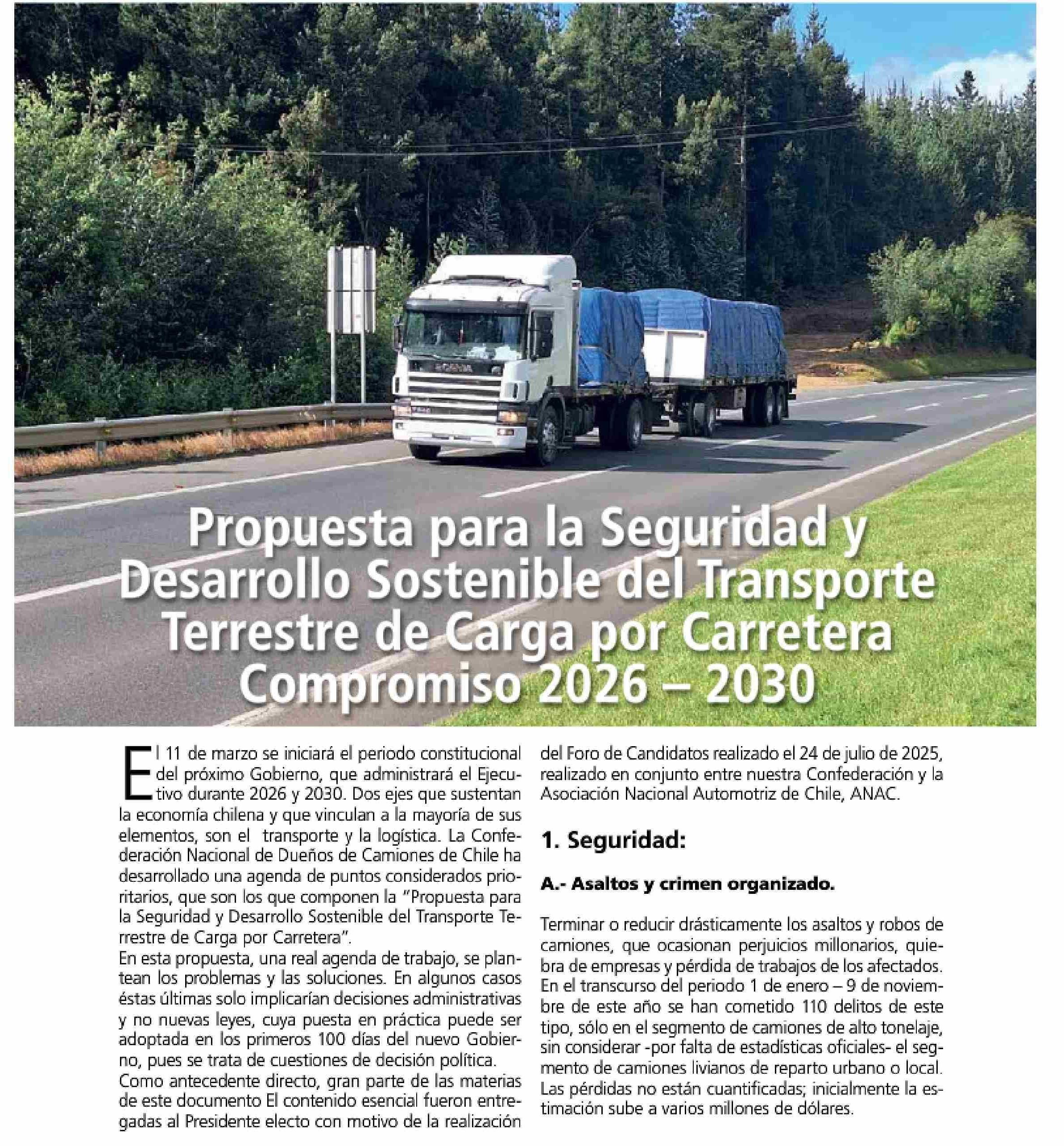 Propuesta para la seguridad y desarrollo sostenible del transporte terrestre de carga por carretera compromiso 2026-2030