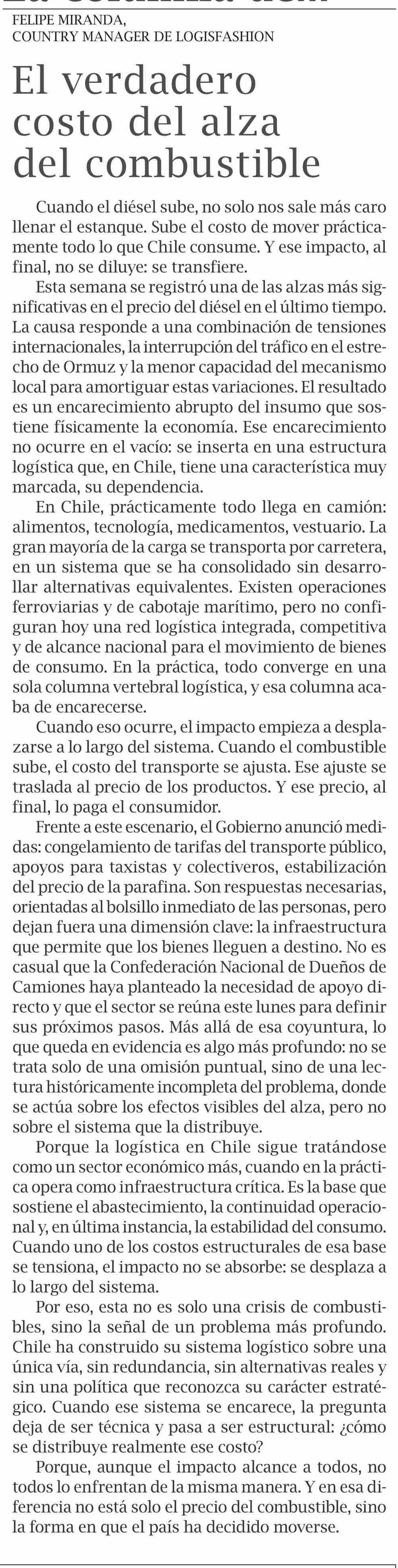 Columnas de Opinión: El verdadero costo del alza del combustible