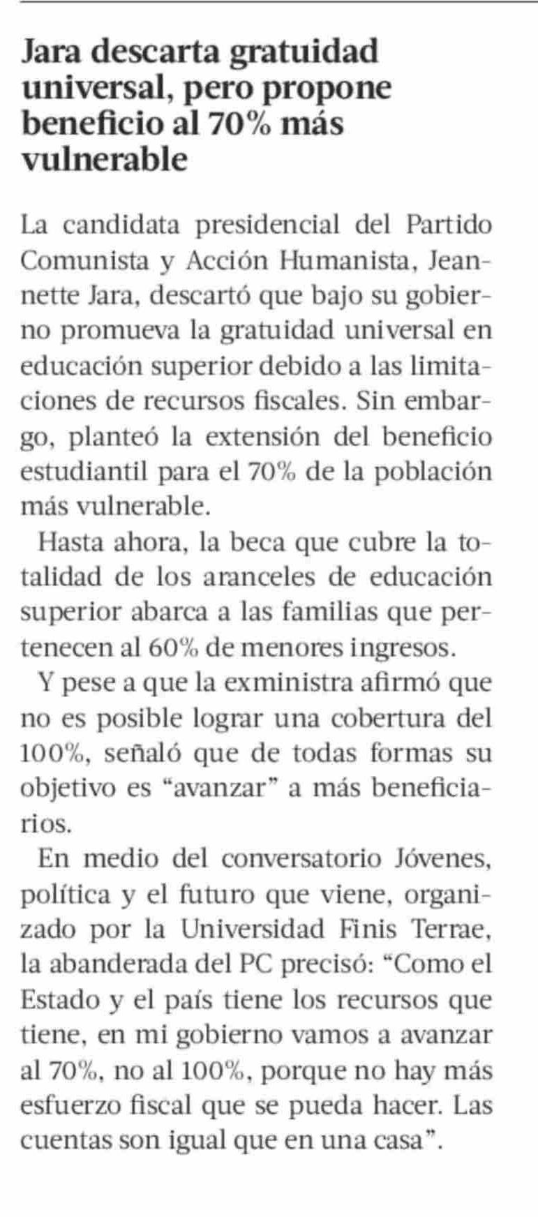 Jara descarta gratuidad universal, pero propone beneficio al 70% más vulnerable