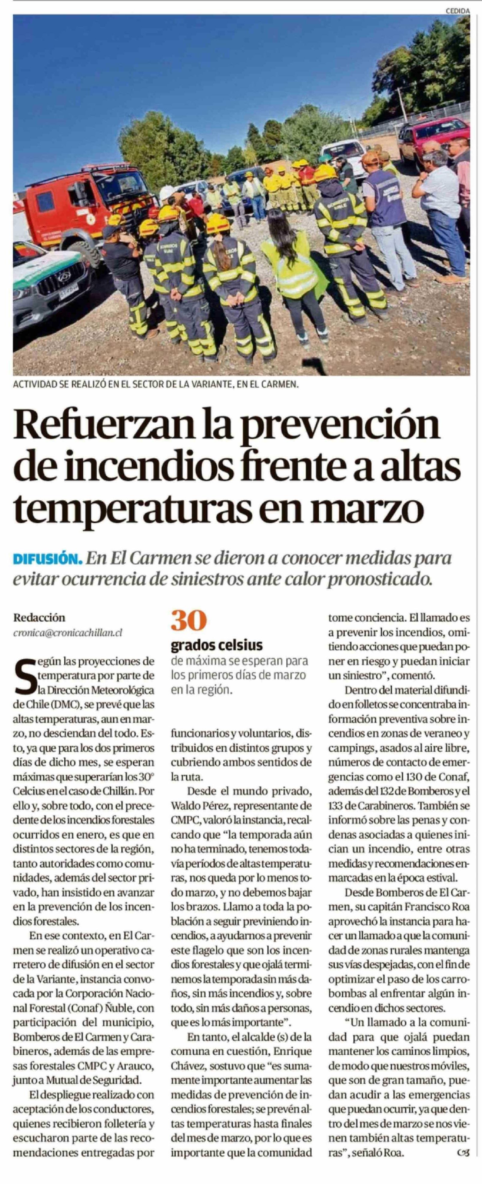 Refuerzan la prevención de incendios frente a altas temperaturas en marzo