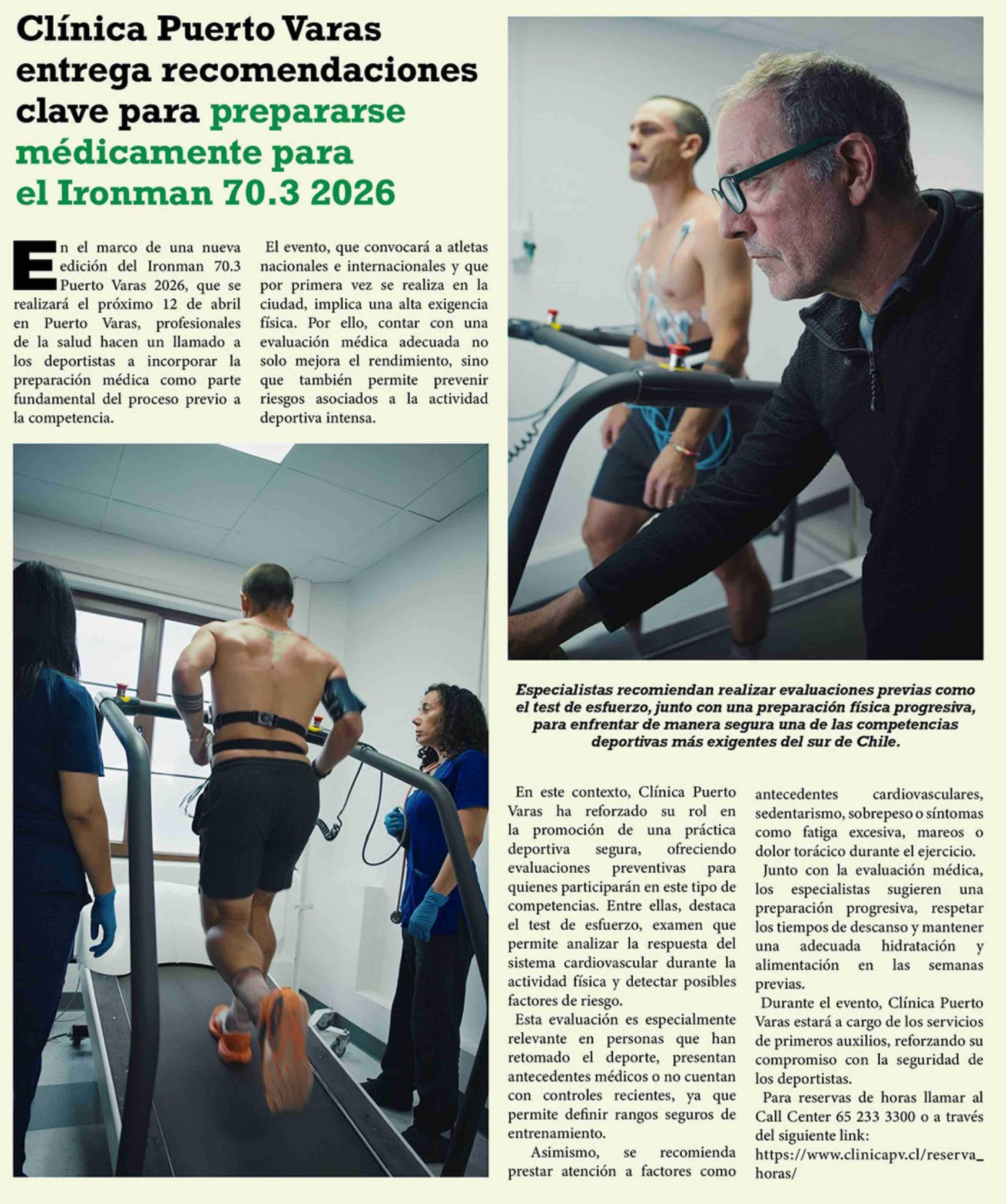 Clínica Puerto Varas entrega recomendaciones clave para prepararse médicamente para el Ironman 70.3 2026