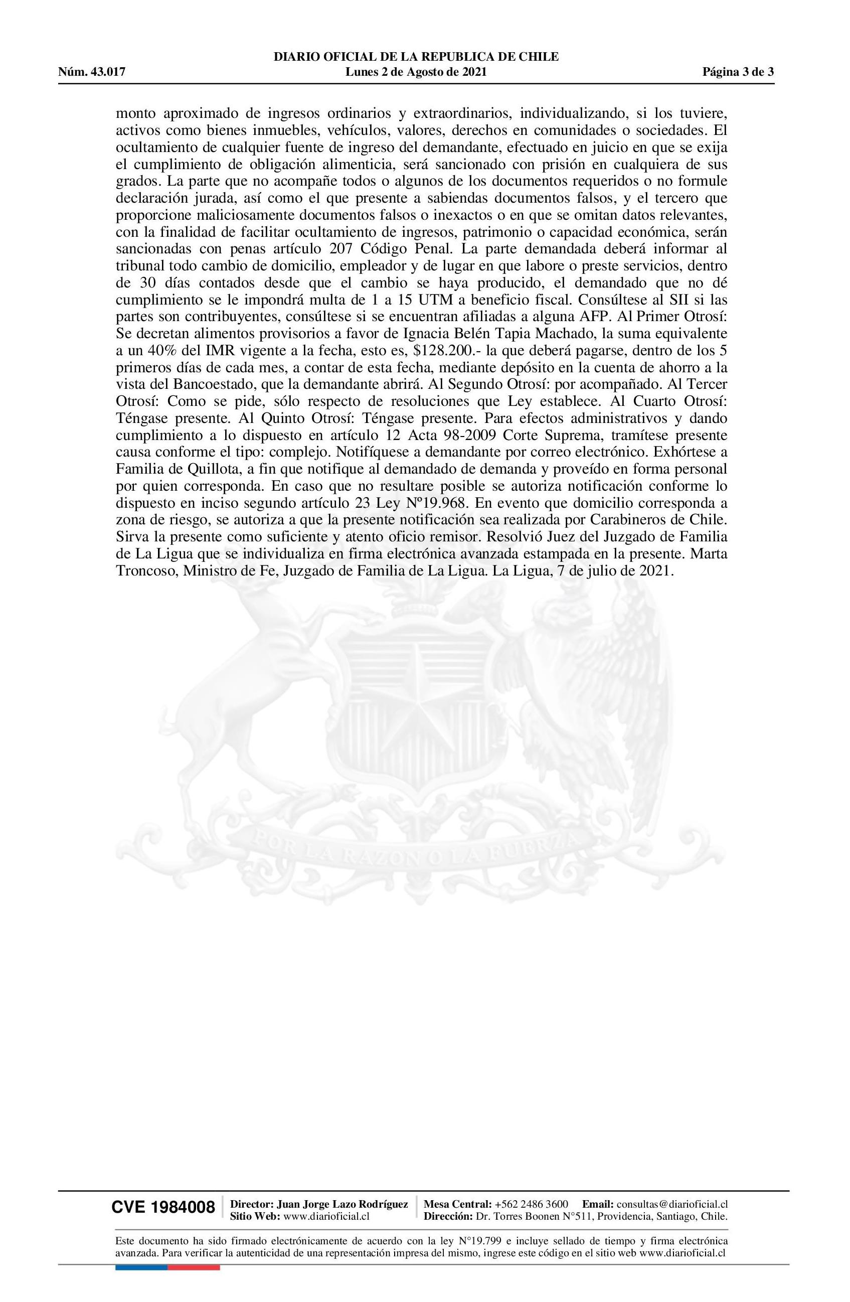 Diario Oficial Edición Electrónica (Diario Oficial de Chile - 3 Public. Judiciales)