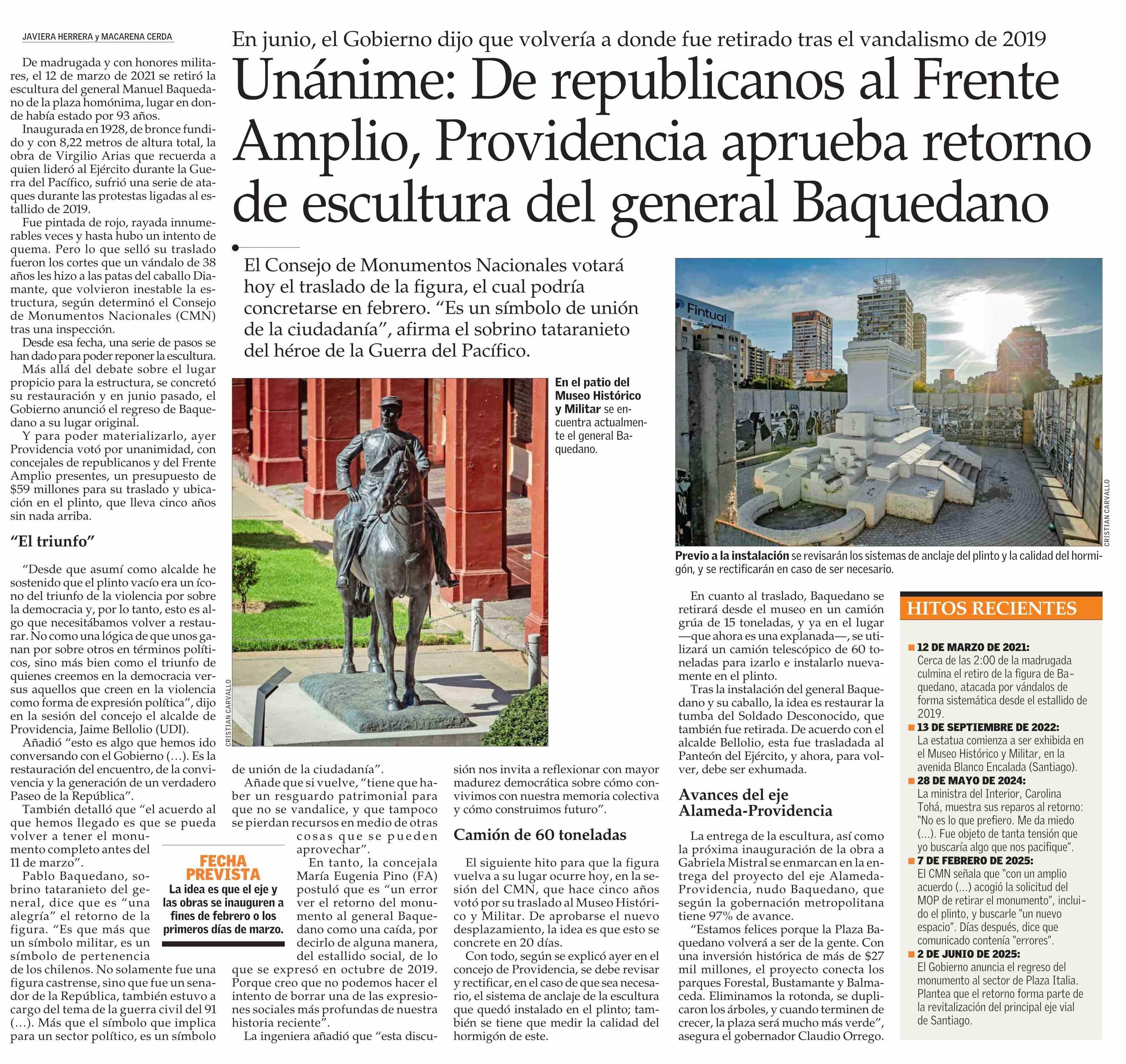 Unánime: De republicanos al Frente Amplio, Providencia aprueba retorno de escultura del general Baquedano