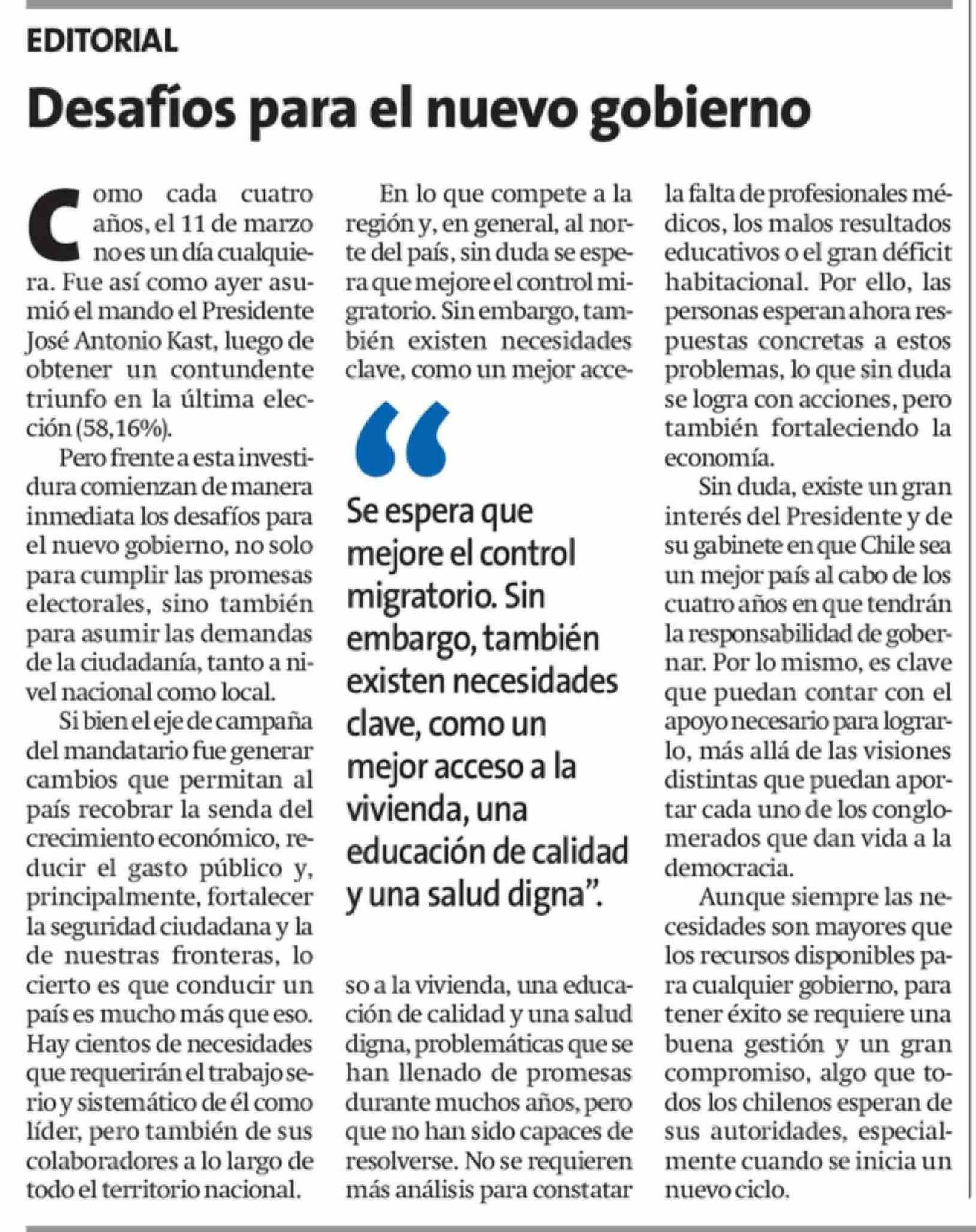 Desafíos para el nuevo gobierno