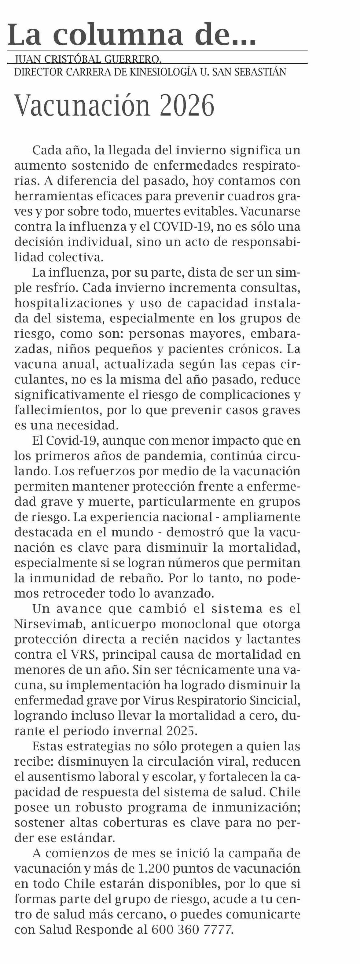 COLUMNAS DE OPINIÓN: Vacunación 2026