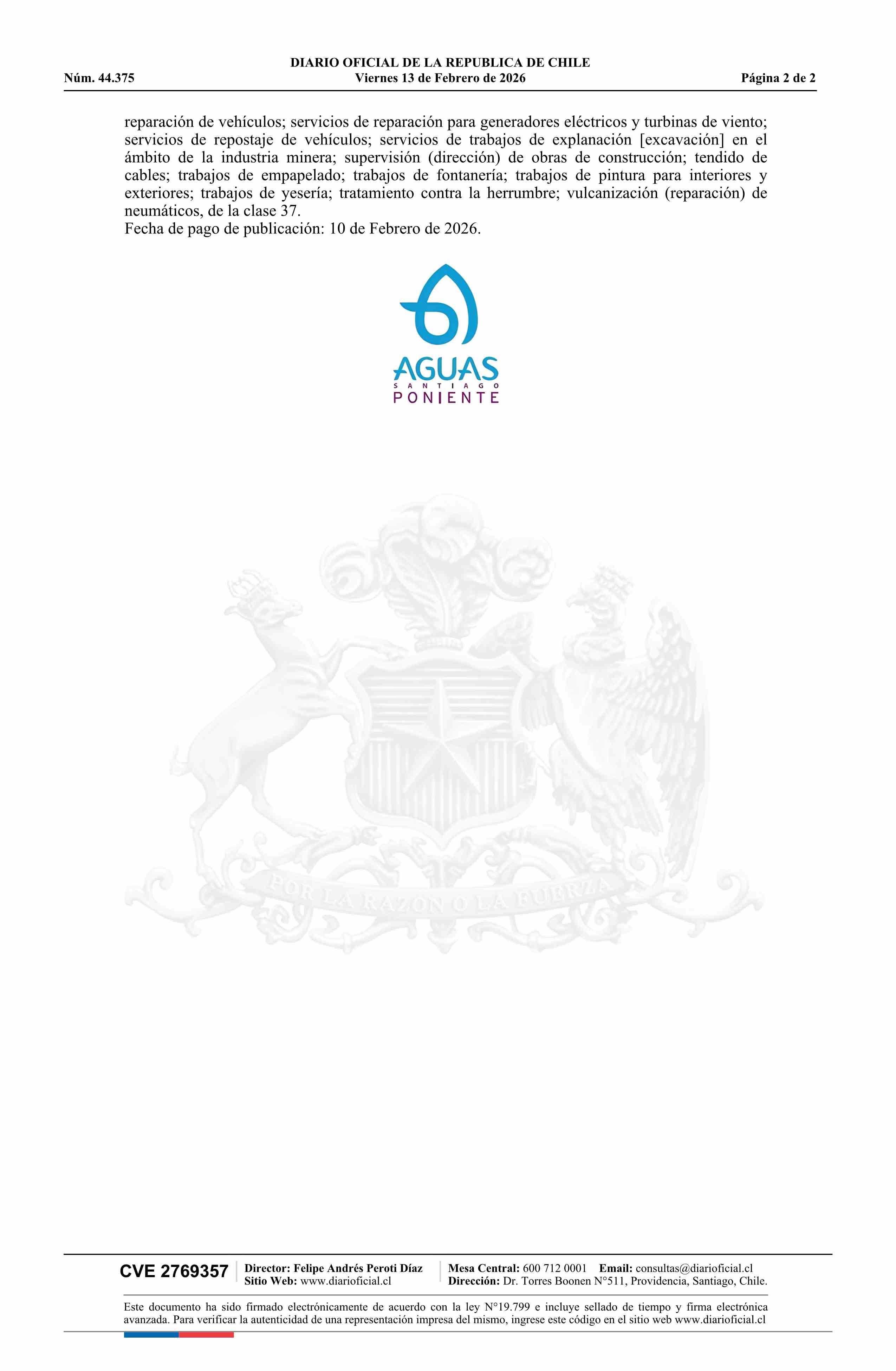 Solicitud número 1645458.- AGUAS SANTIAGO PONIENTE