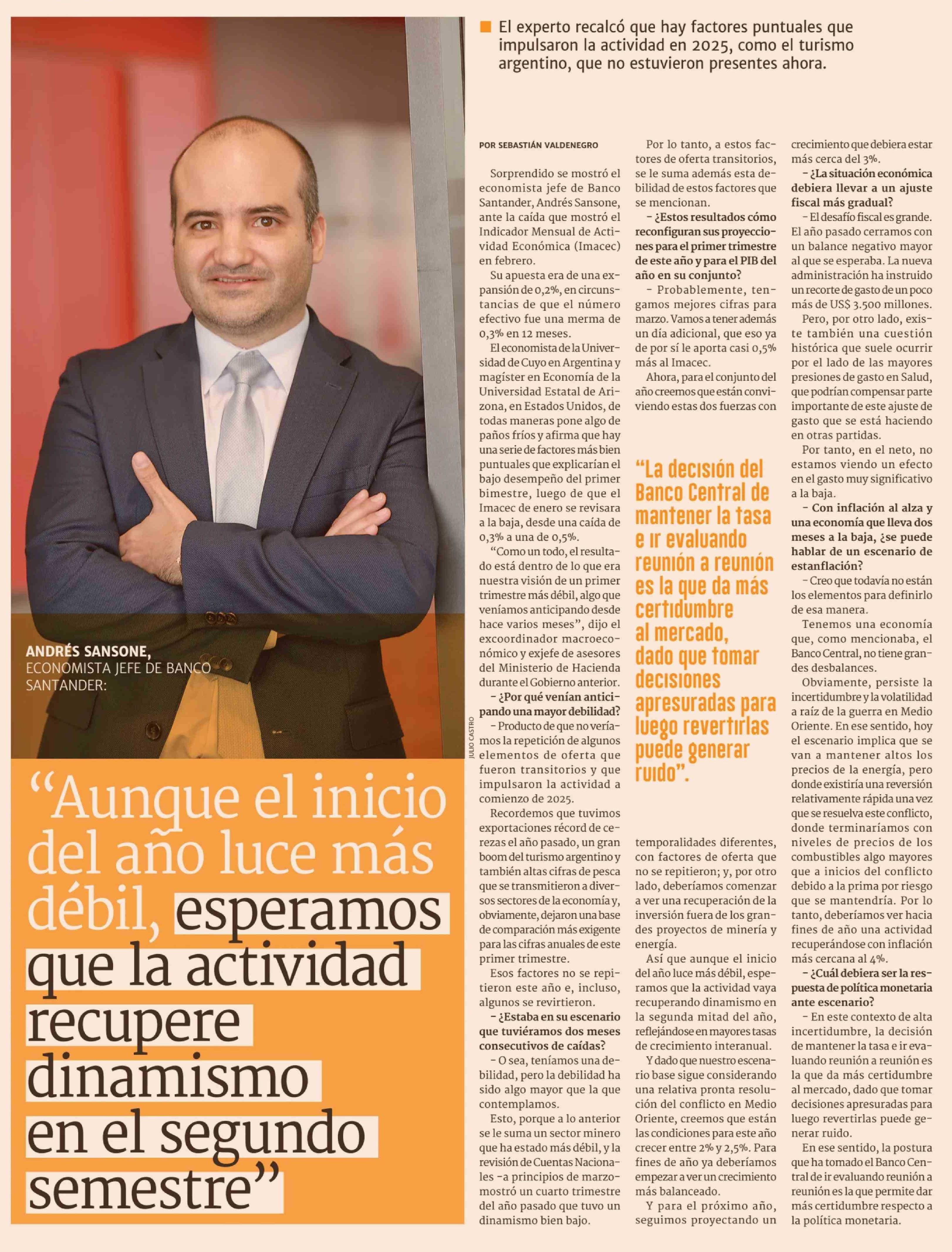 Título: "Aunque el inicio del año luce más débil, esperamos que la actividad recupere dinamismo en el segundo semestre"