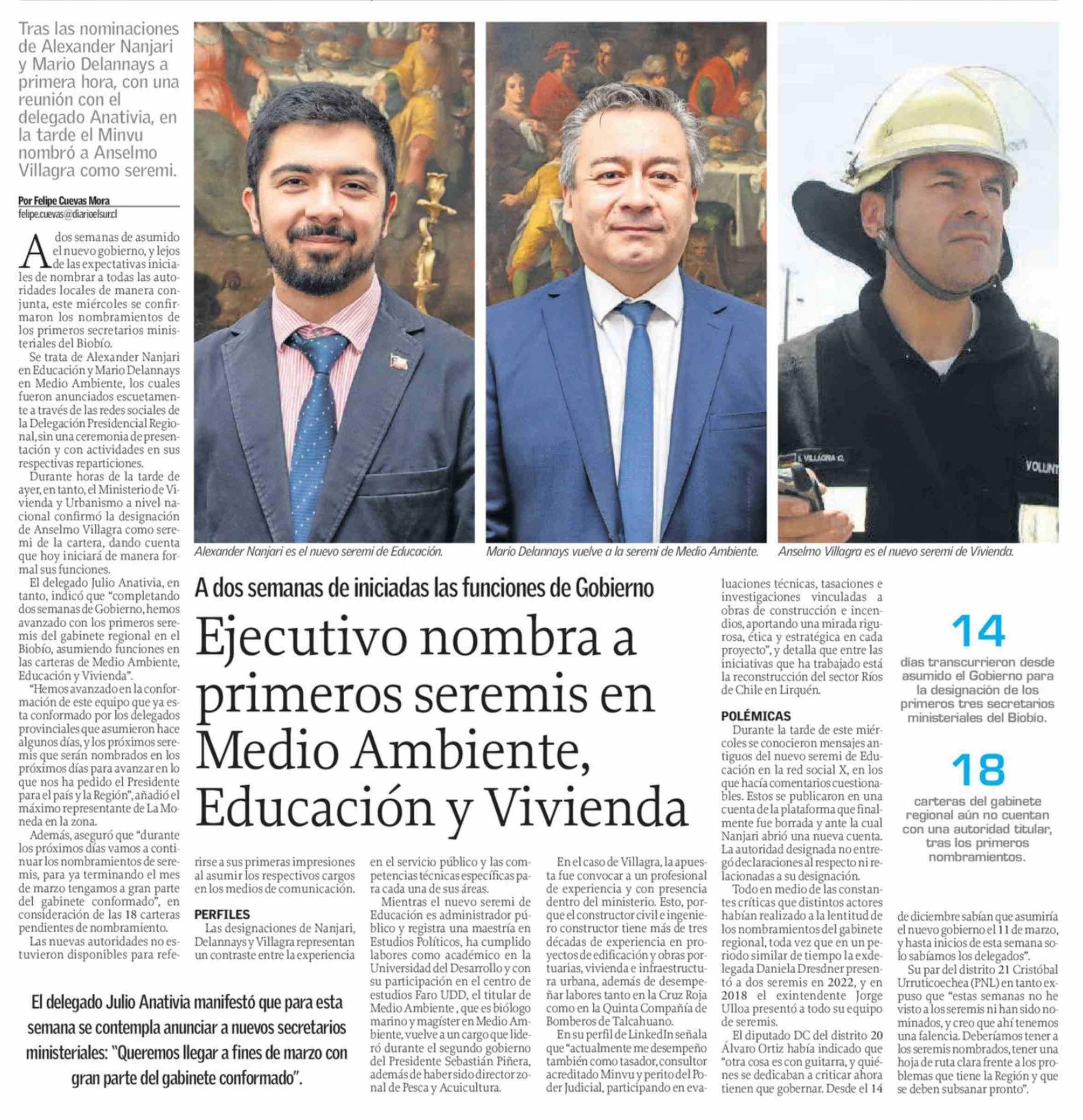 Ejecutivo nombra a primeros seremis en Medio Ambiente, Educación y Vivienda