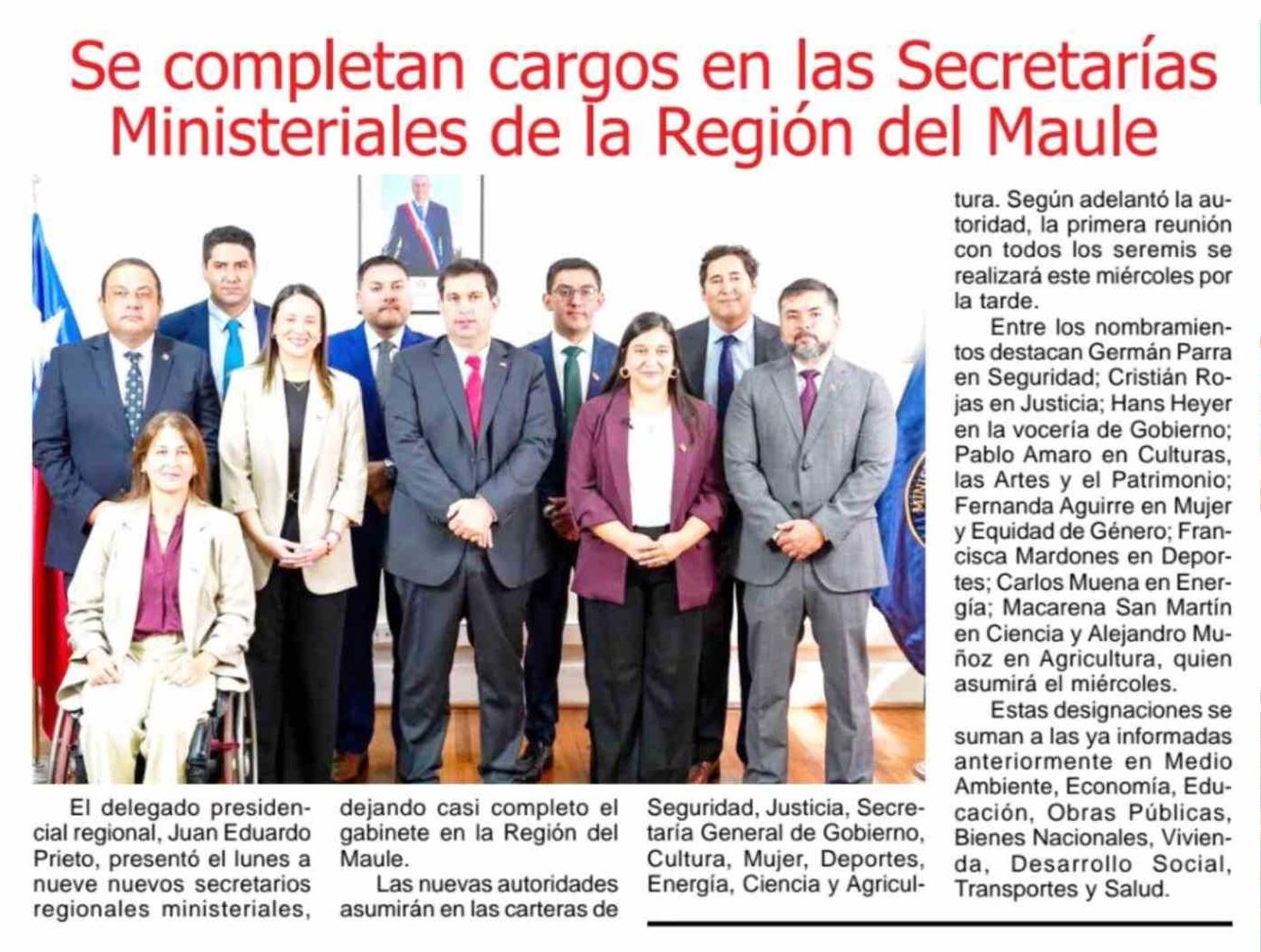 Se completan cargos en las Secretarías Ministeriales de la Región del Maule