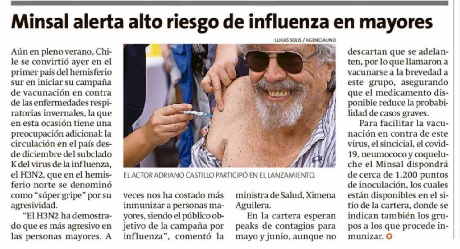 Minsal alerta alto riesgo de influenza en mayores
