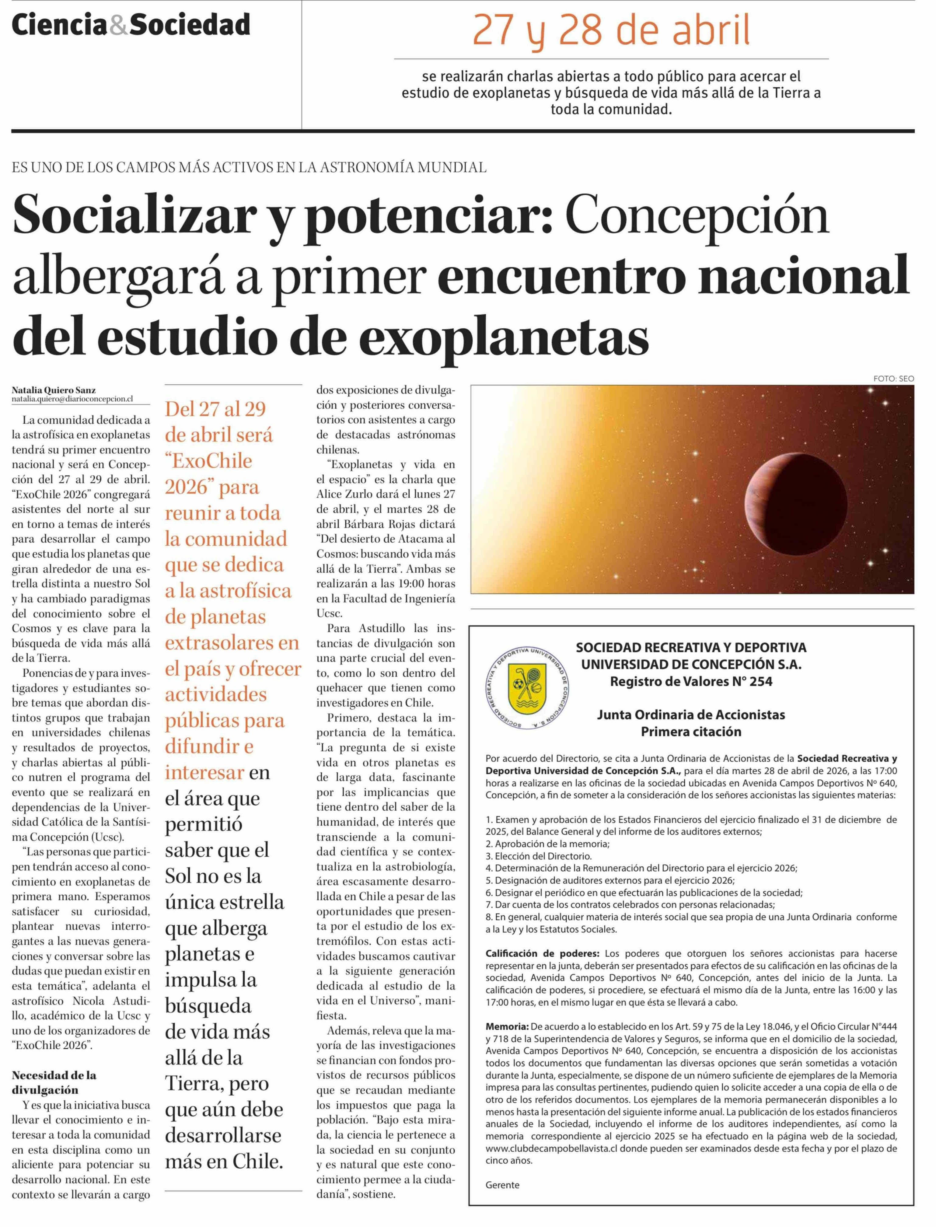 Socializar y potenciar: Concepción albergará a primer encuentro nacional del estudio de exoplanetas