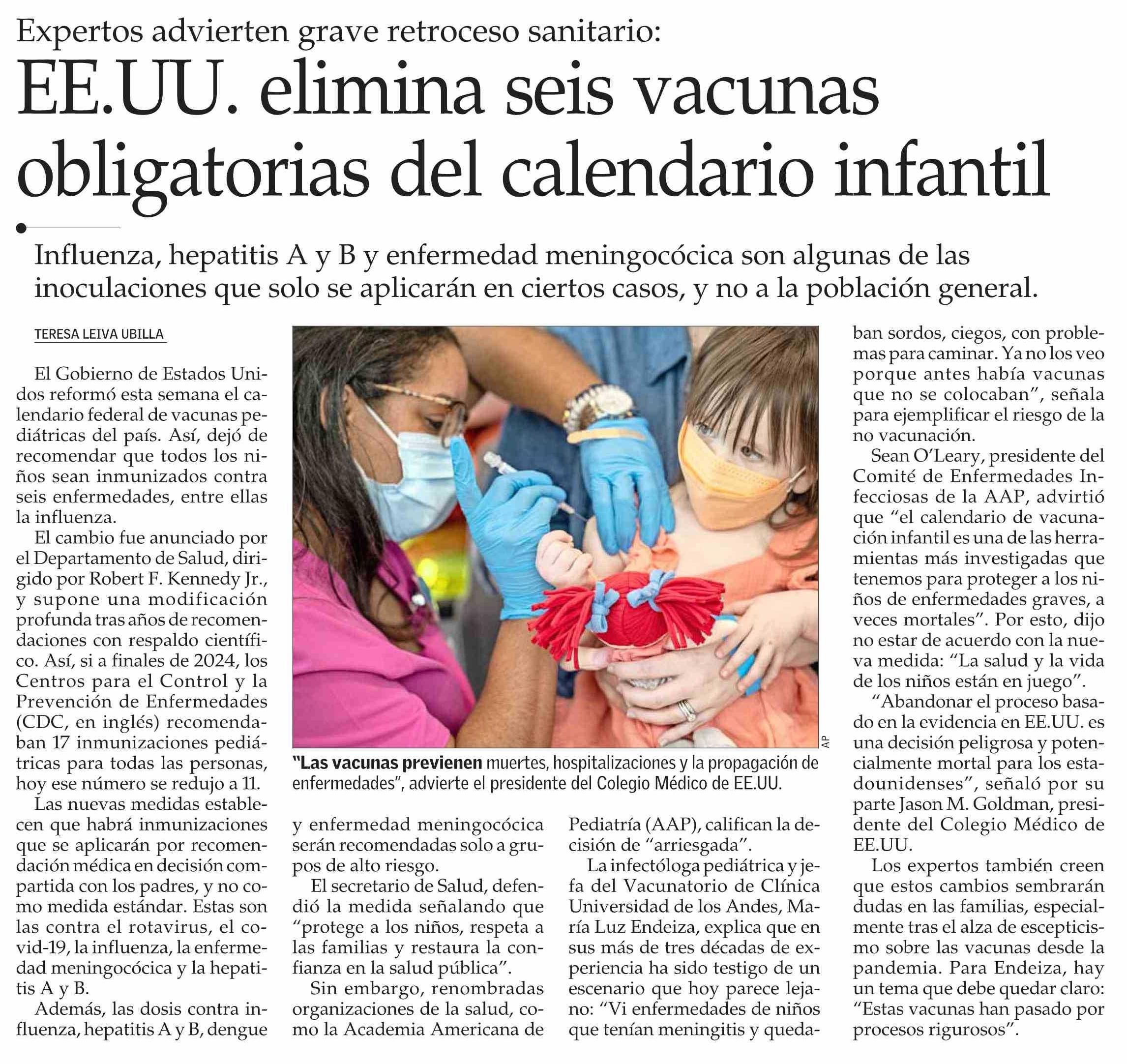 EE.UU. elimina seis vacunas obligatorias del calendario infantil