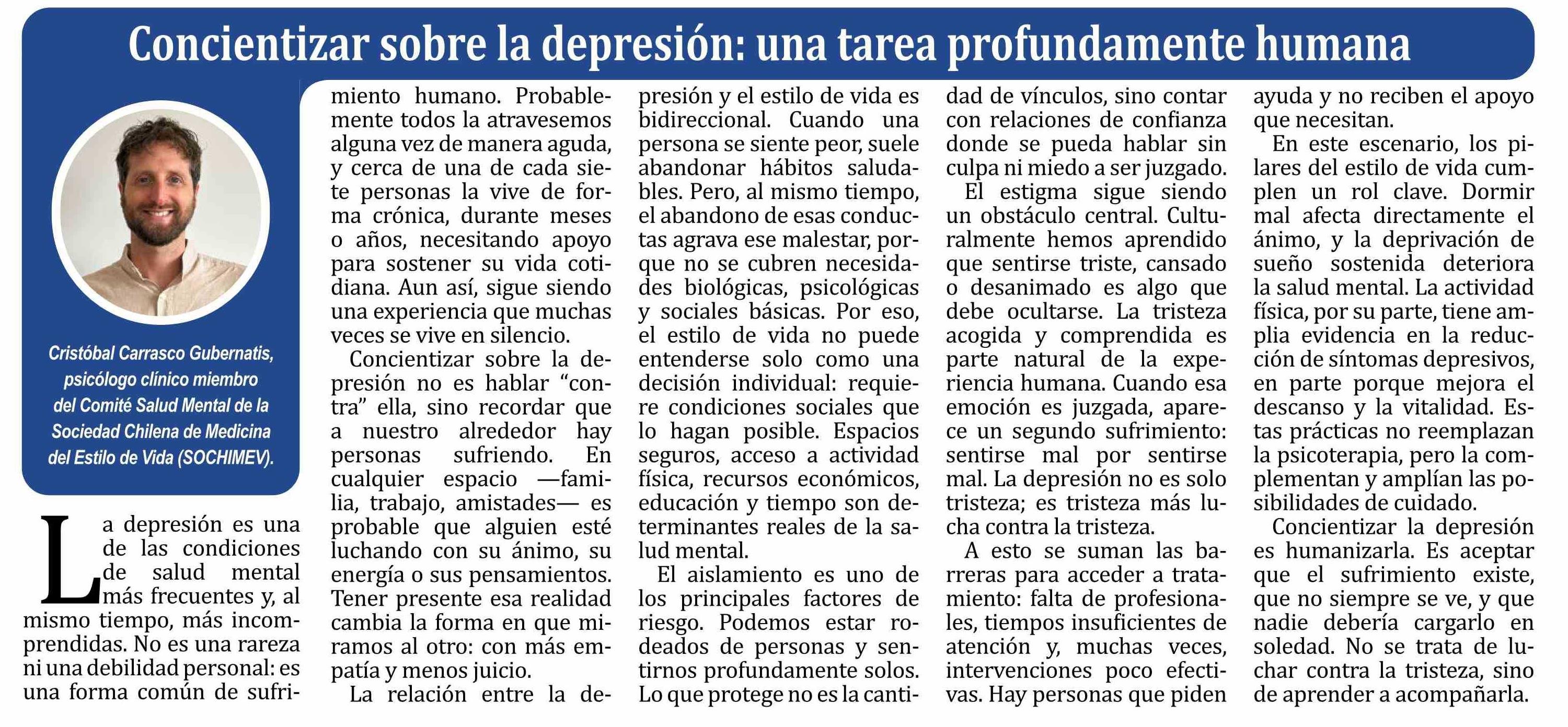Columnas de Opinión: Concientizar sobre la depresión: una tarea profundamente humana