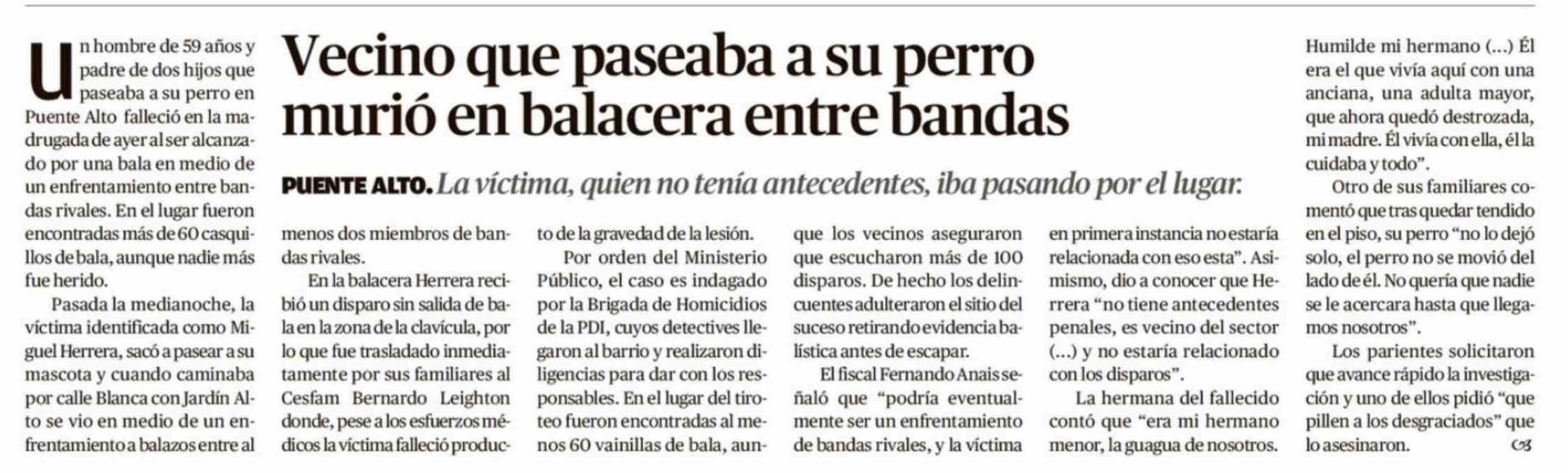 Vecino que paseaba a su perro murió en balacera entre bandas