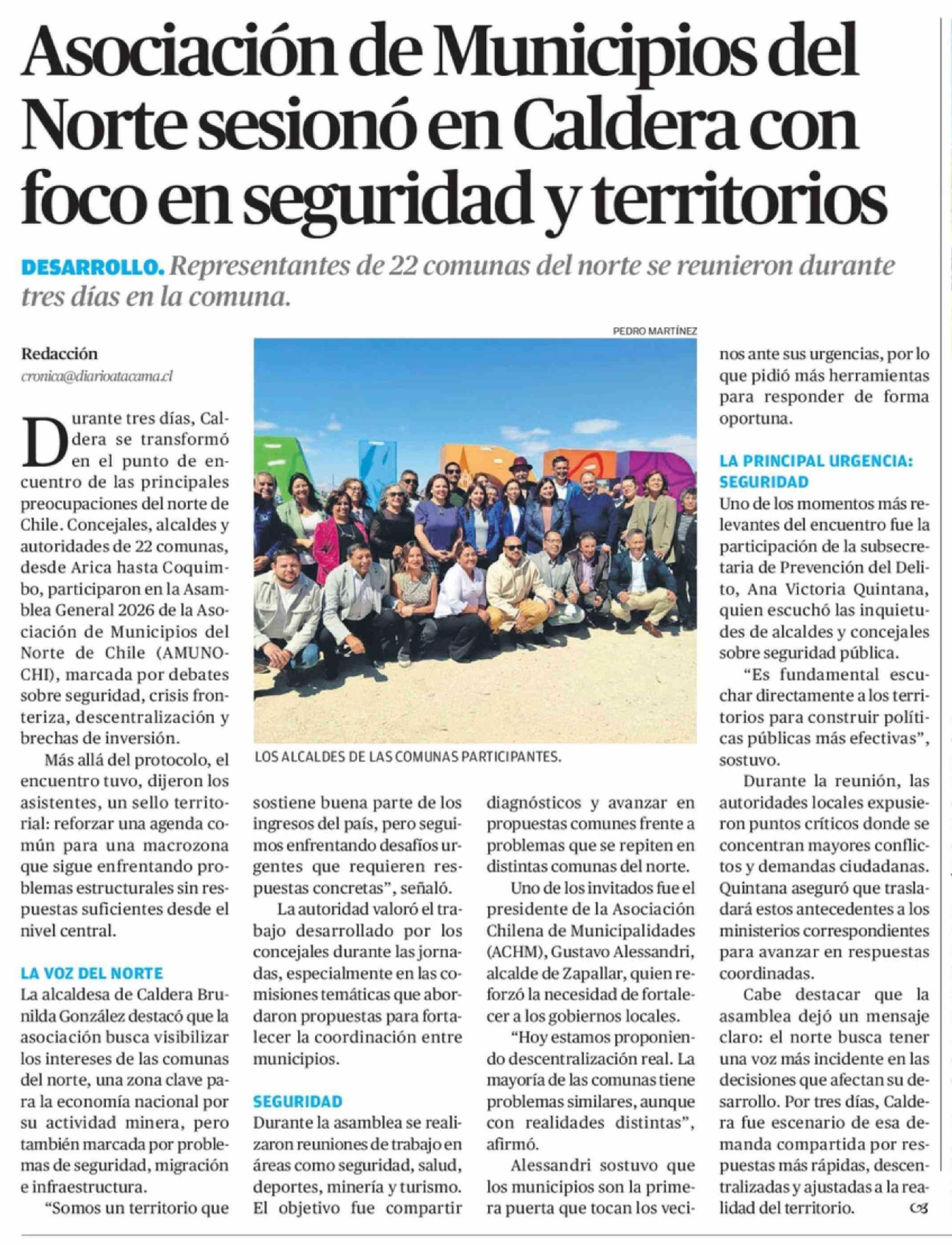 Asociación de Municipios del Norte sesionó en Caldera con foco en seguridad y territorios