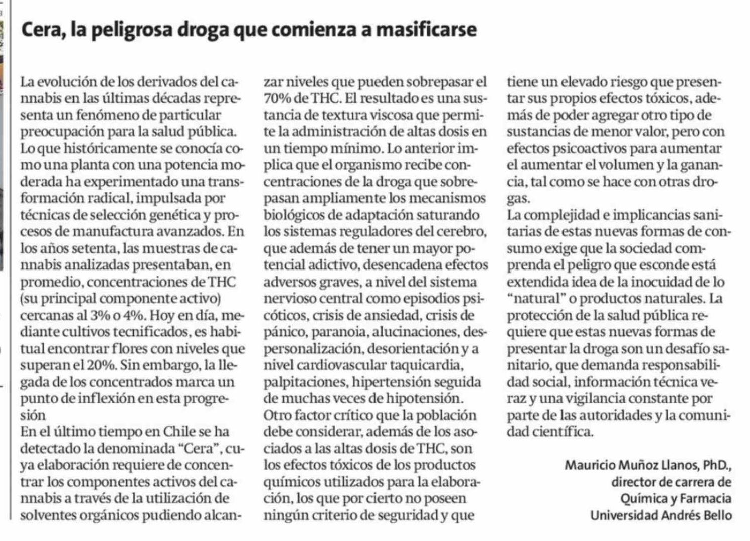 Cartas: Cera, la peligrosa droga que comienza a masificarse