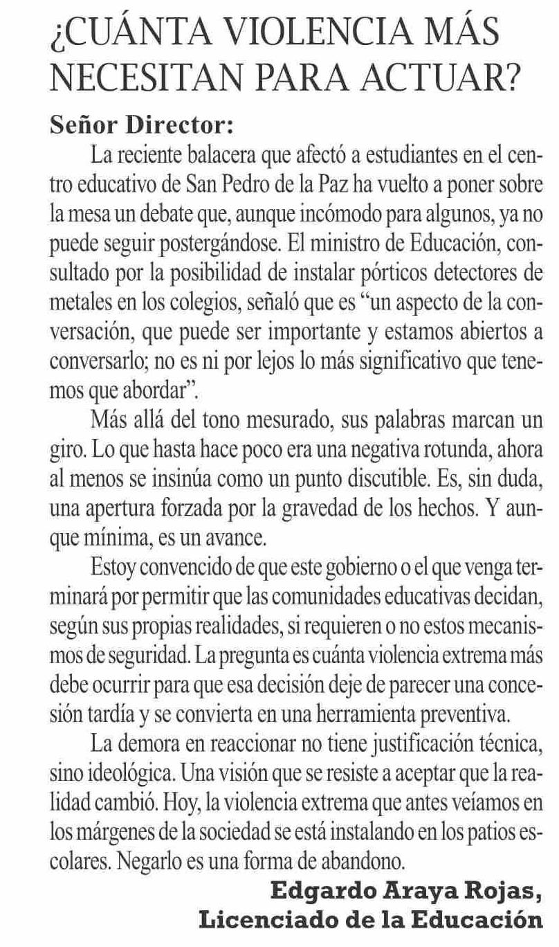 CARTAS: ¿CUÁNTA VIOLENCIA MÁS NECESITAN PARA ACTUAR?