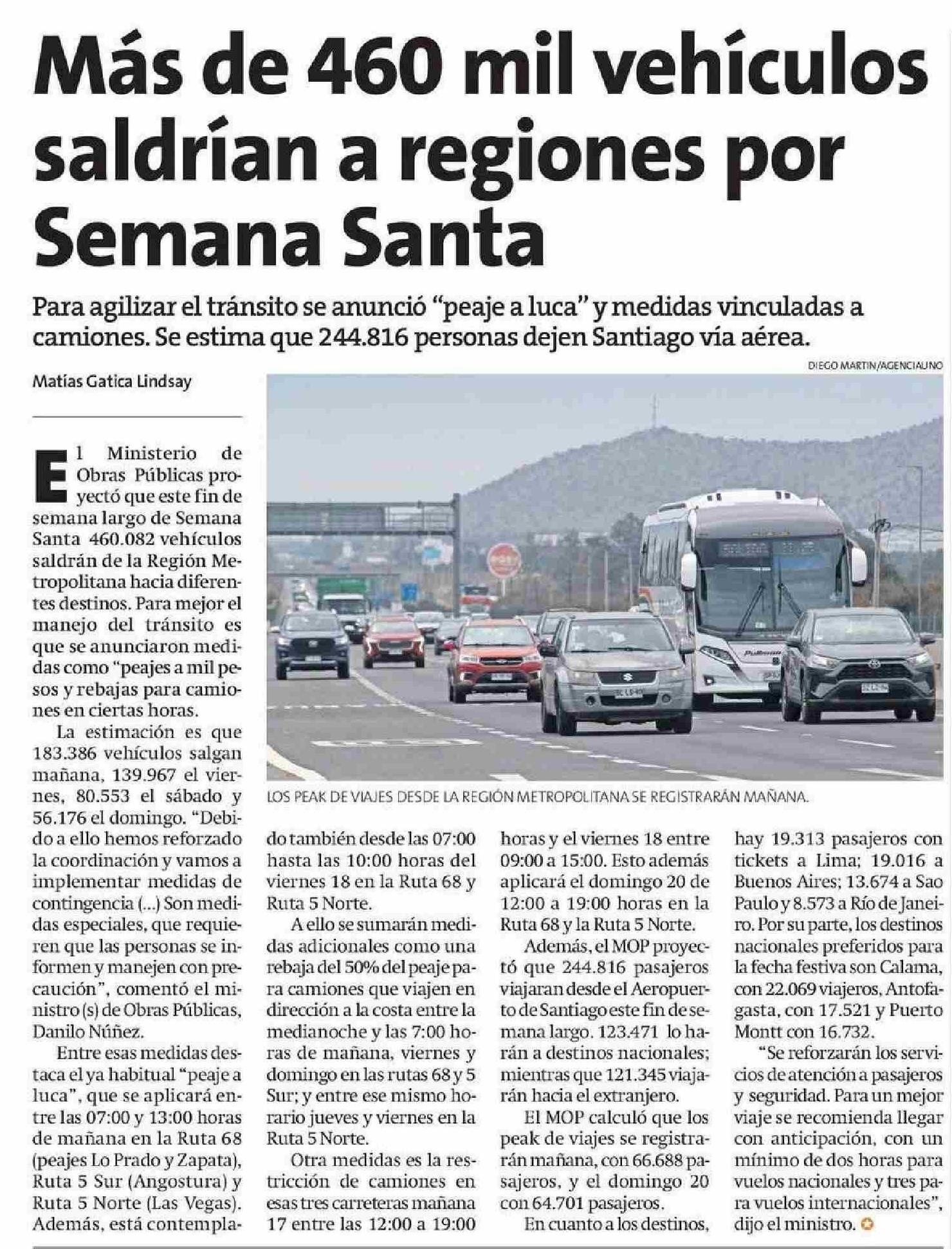 Más de 460 mil vehículos saldrían a regiones por Semana Santa