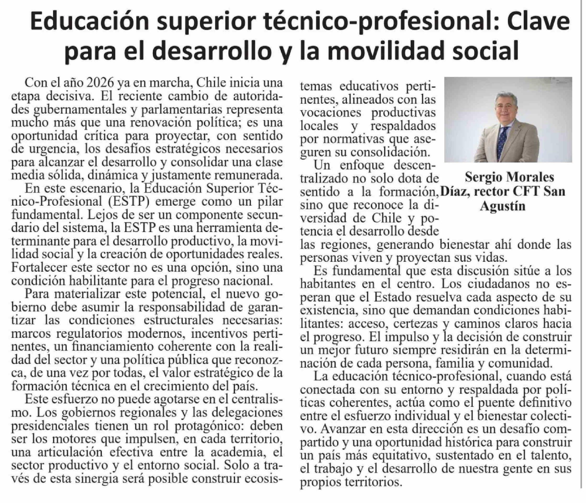 Columnas de Opinión: Educación superior técnico-profesional: Clave para el desarrollo y la movilidad social