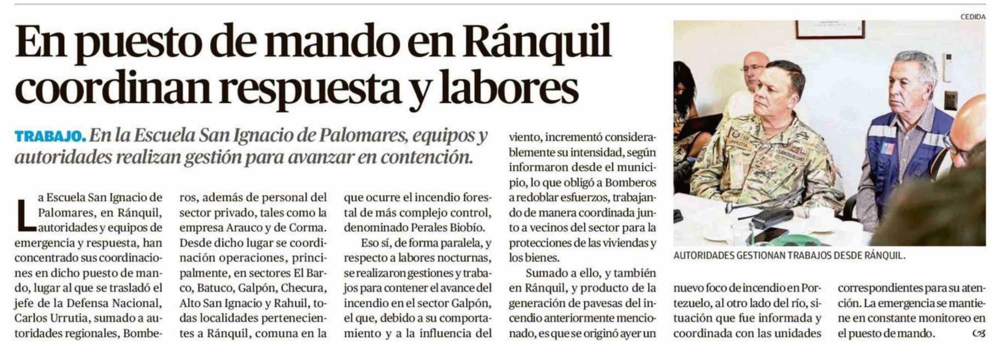 En puesto de mando en Ránquil coordinan respuesta y labores