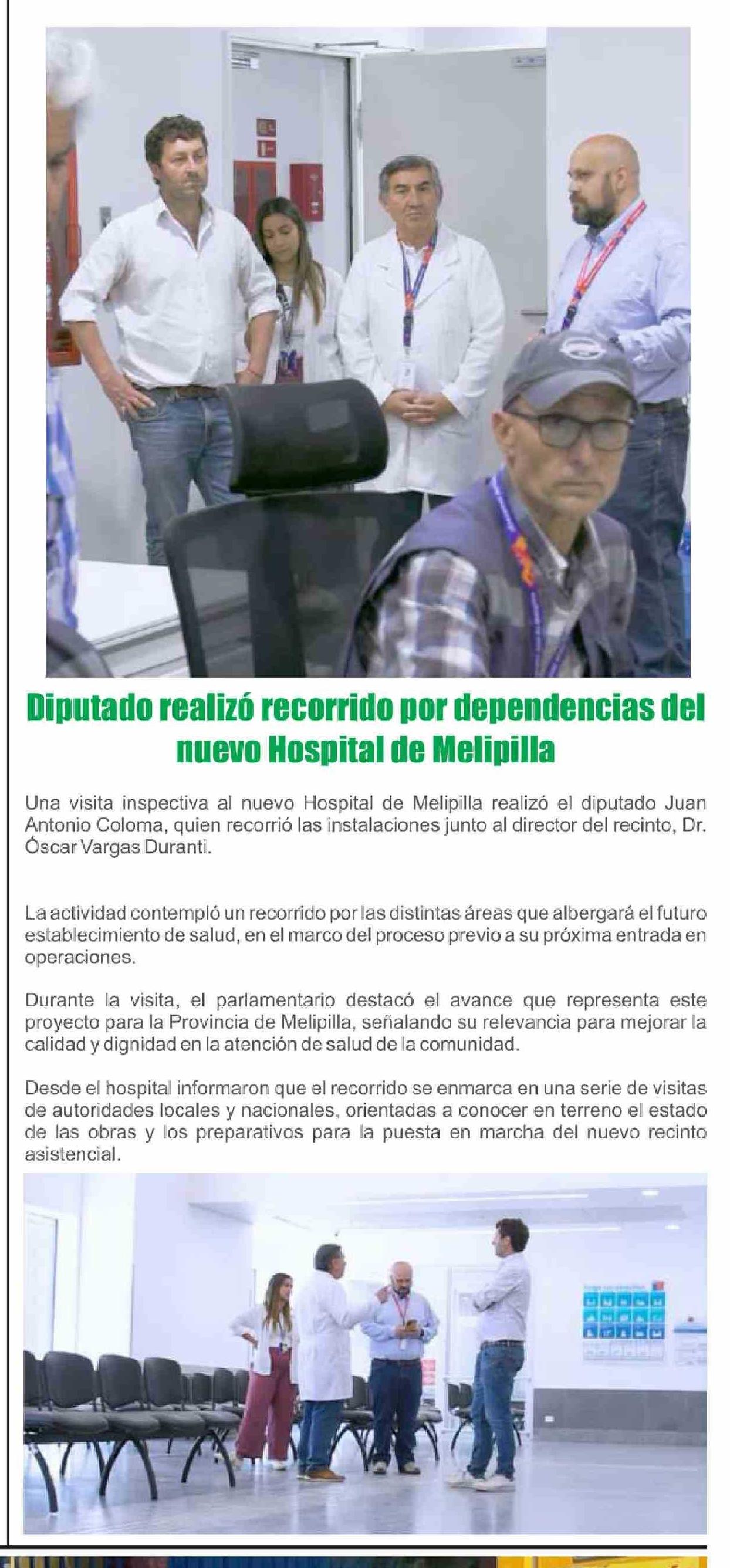 Diputado realizó recorrido por dependencias del nuevo Hospital de Melipilla