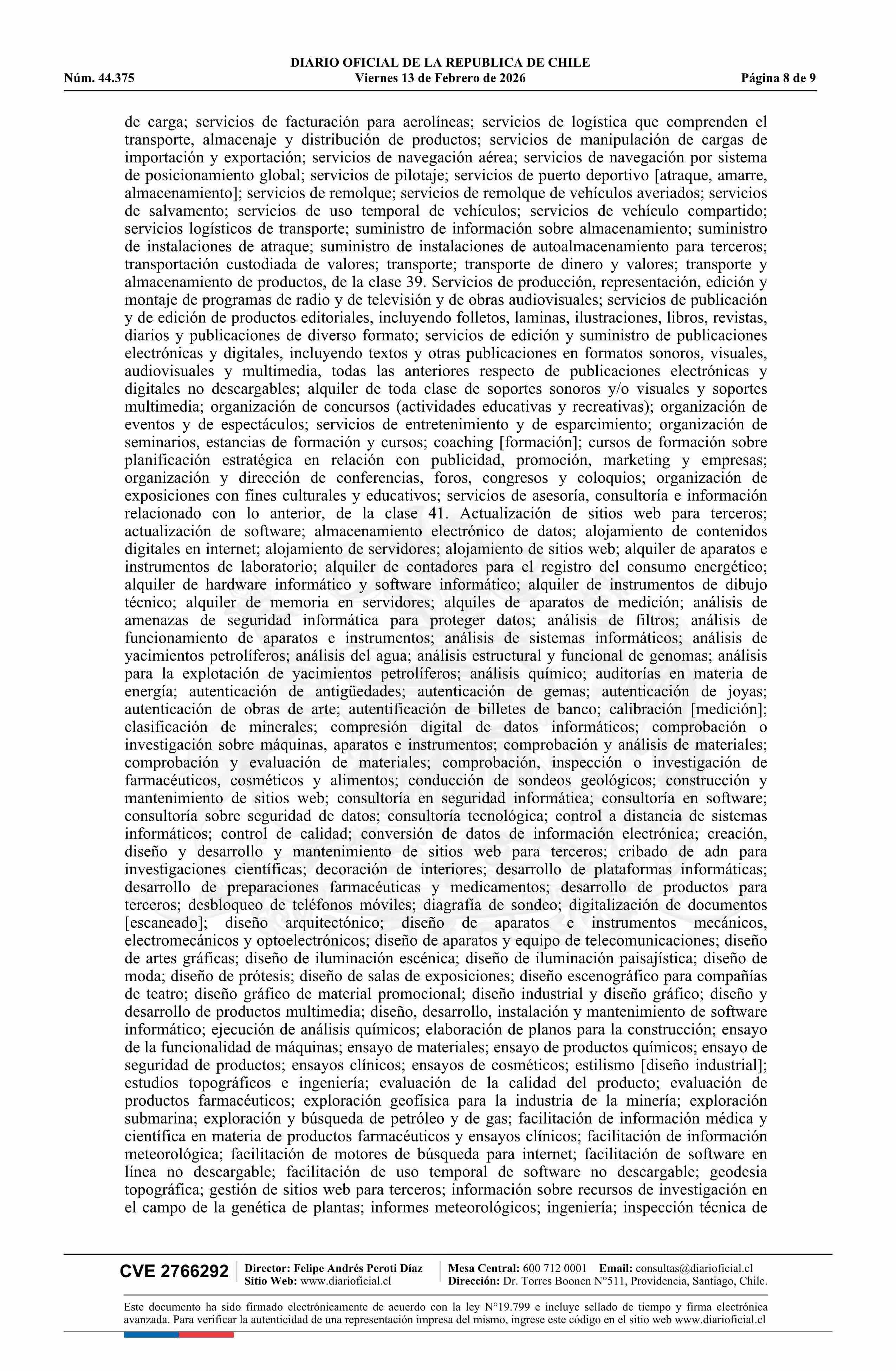 Diario Oficial Edición Electrónica (Diario Oficial de Chile - 6 Marcas Y Patentes)