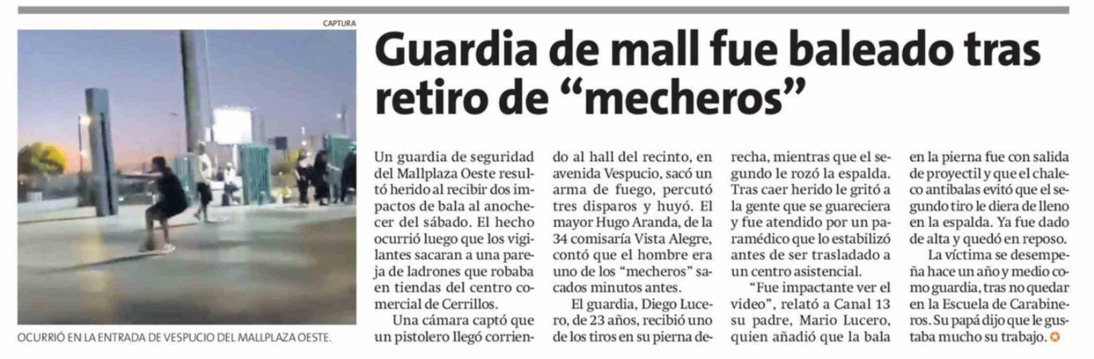 Guardia de mall fue baleado tras retiro de "mecheros"