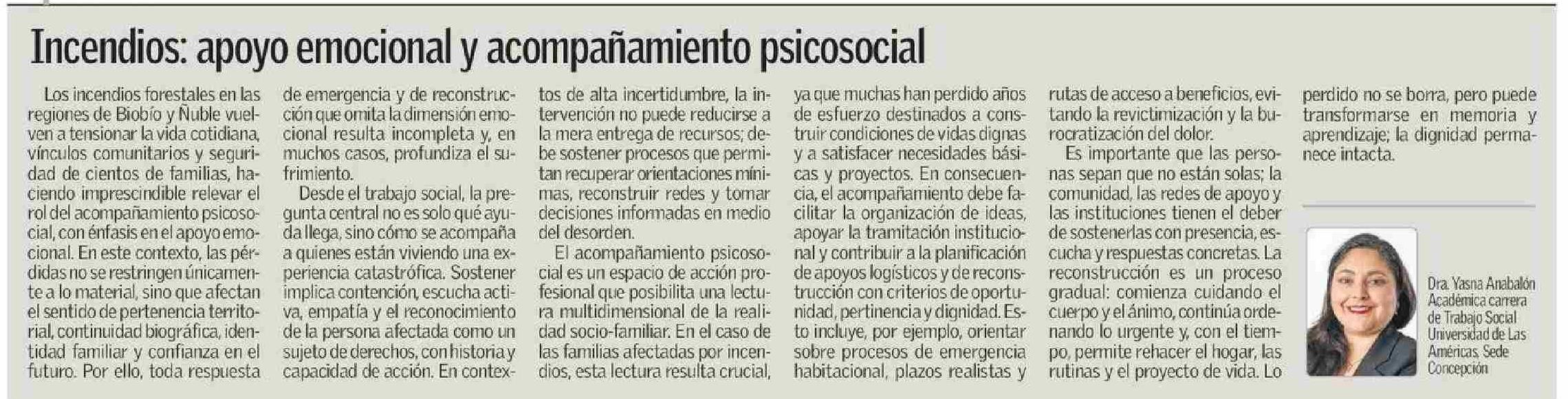 Columnas de Opinión: Incendios: apoyo emocional y acompañamiento psicosocial