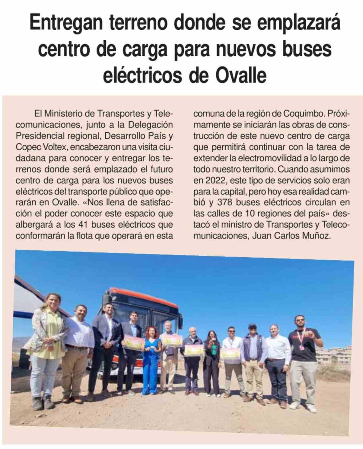 Entregan terreno donde se emplazará centro de carga para nuevos buses eléctricos de Ovalle