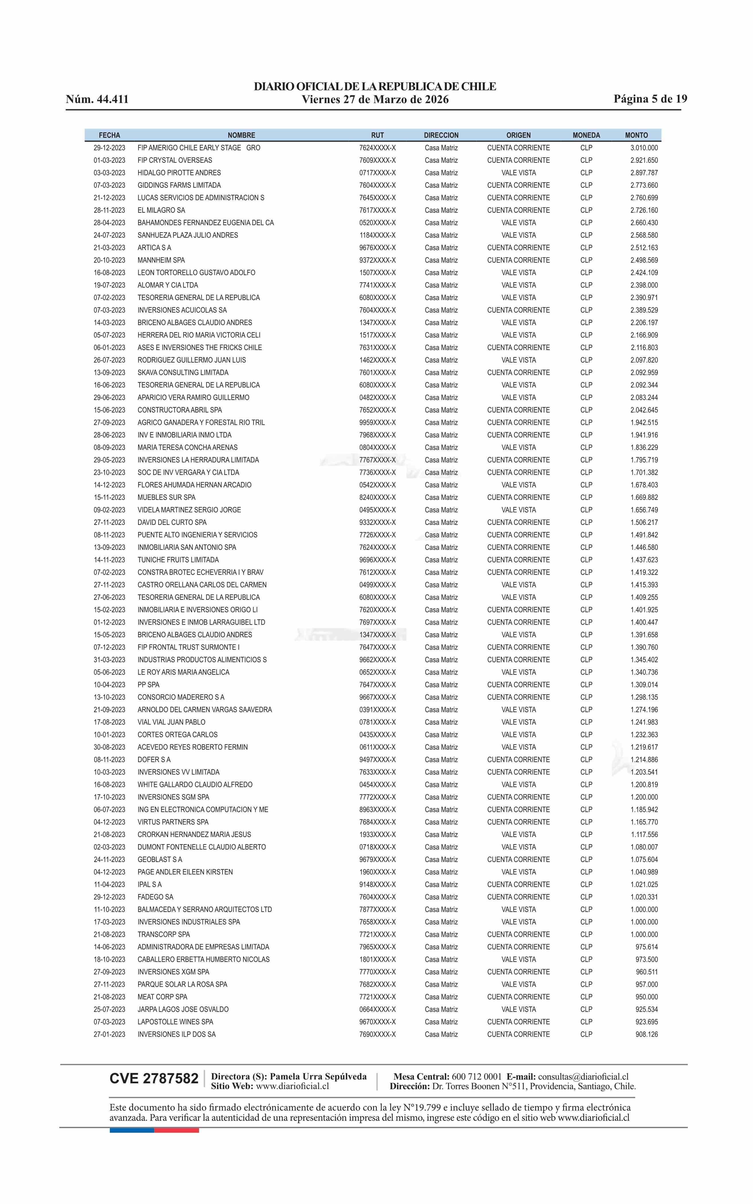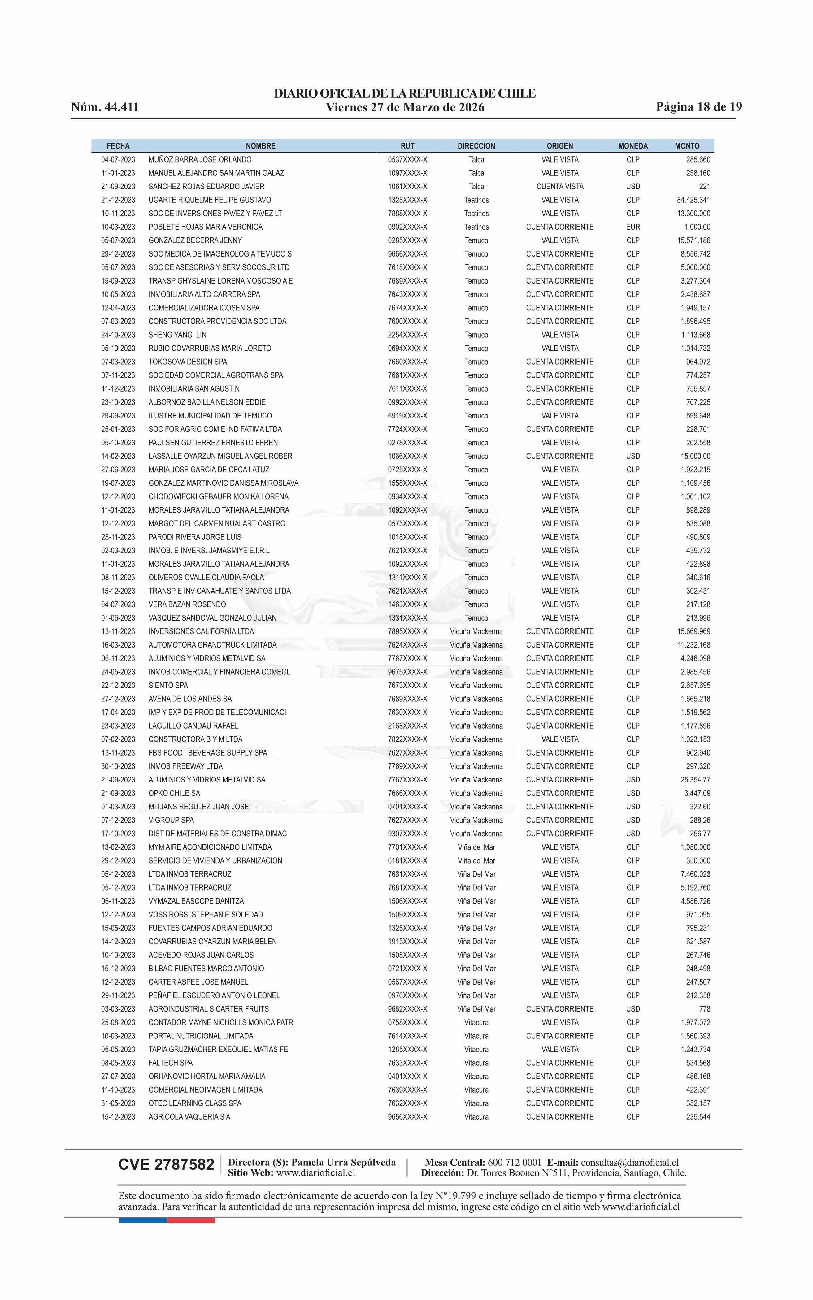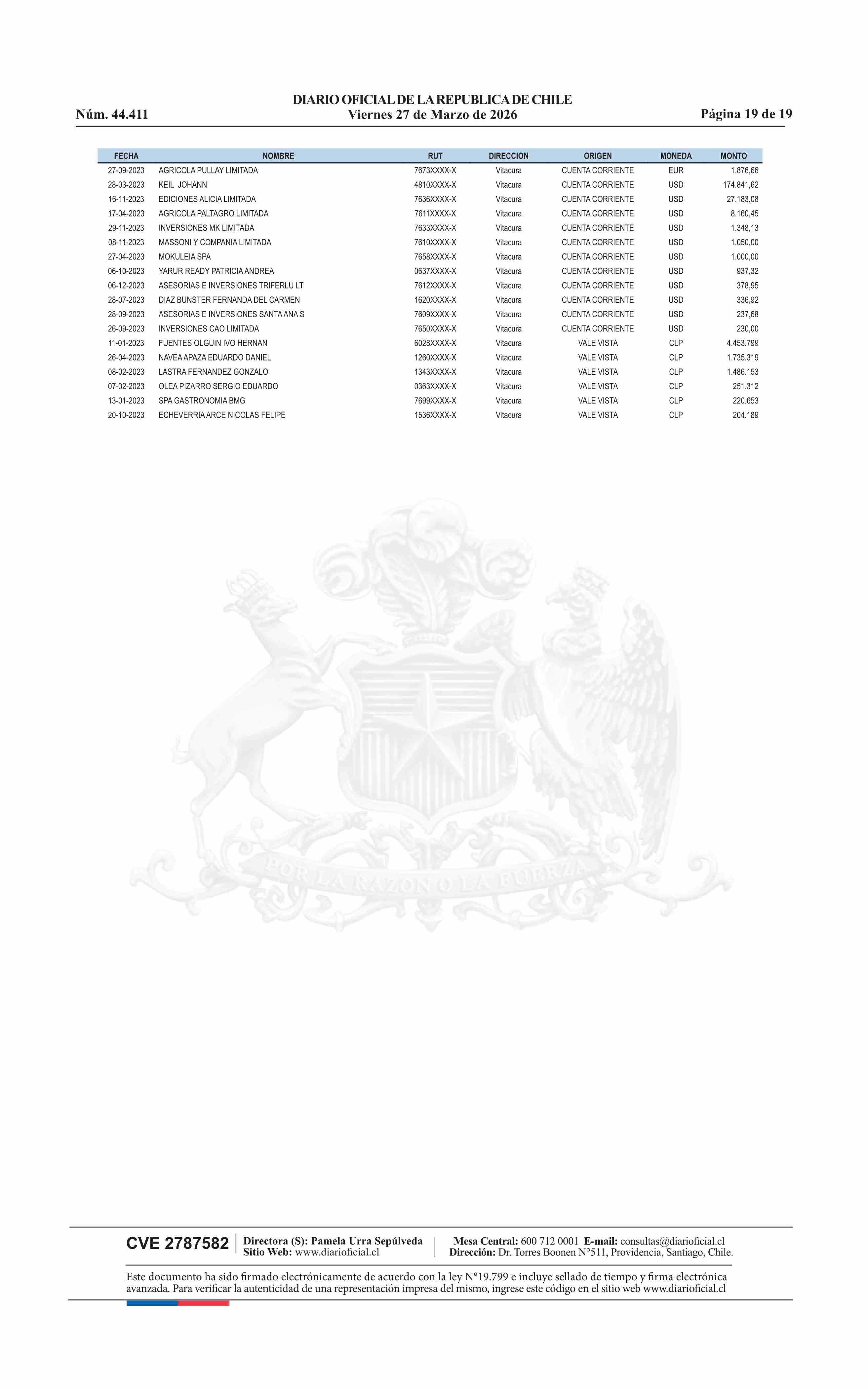 | Fuente: | Diario Oficial Edición Electrónica (Diario Oficial de Chile - 4 Avisos Destacados) | Página(s): | 13-31 |