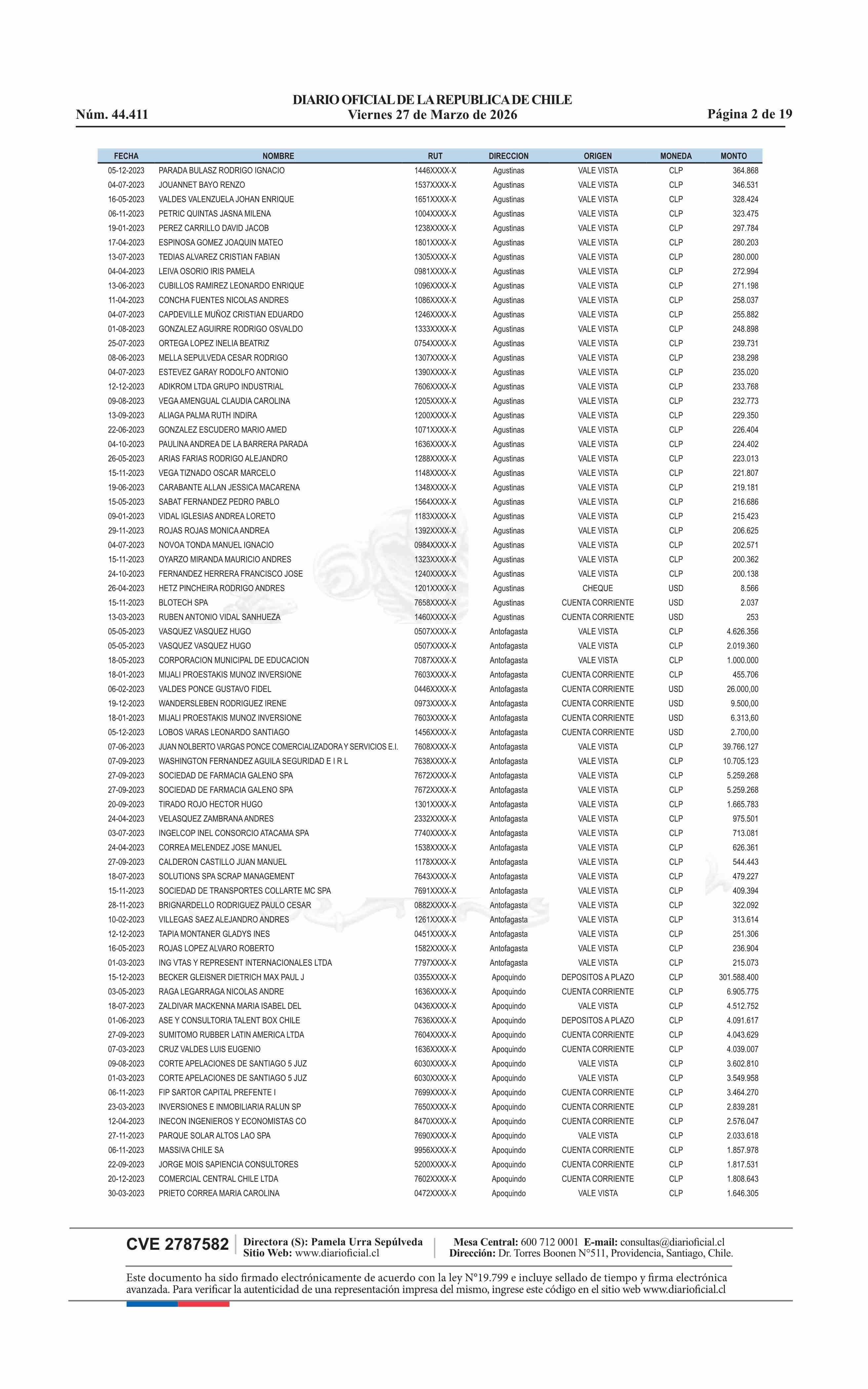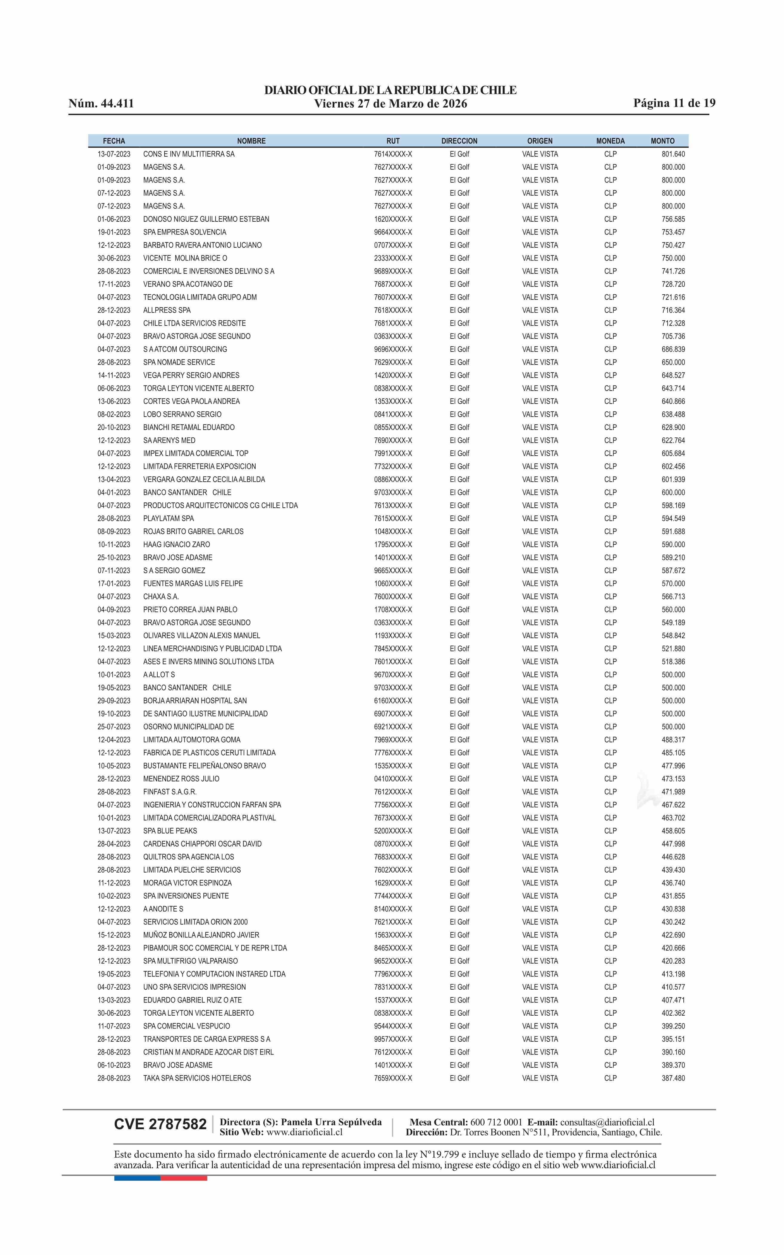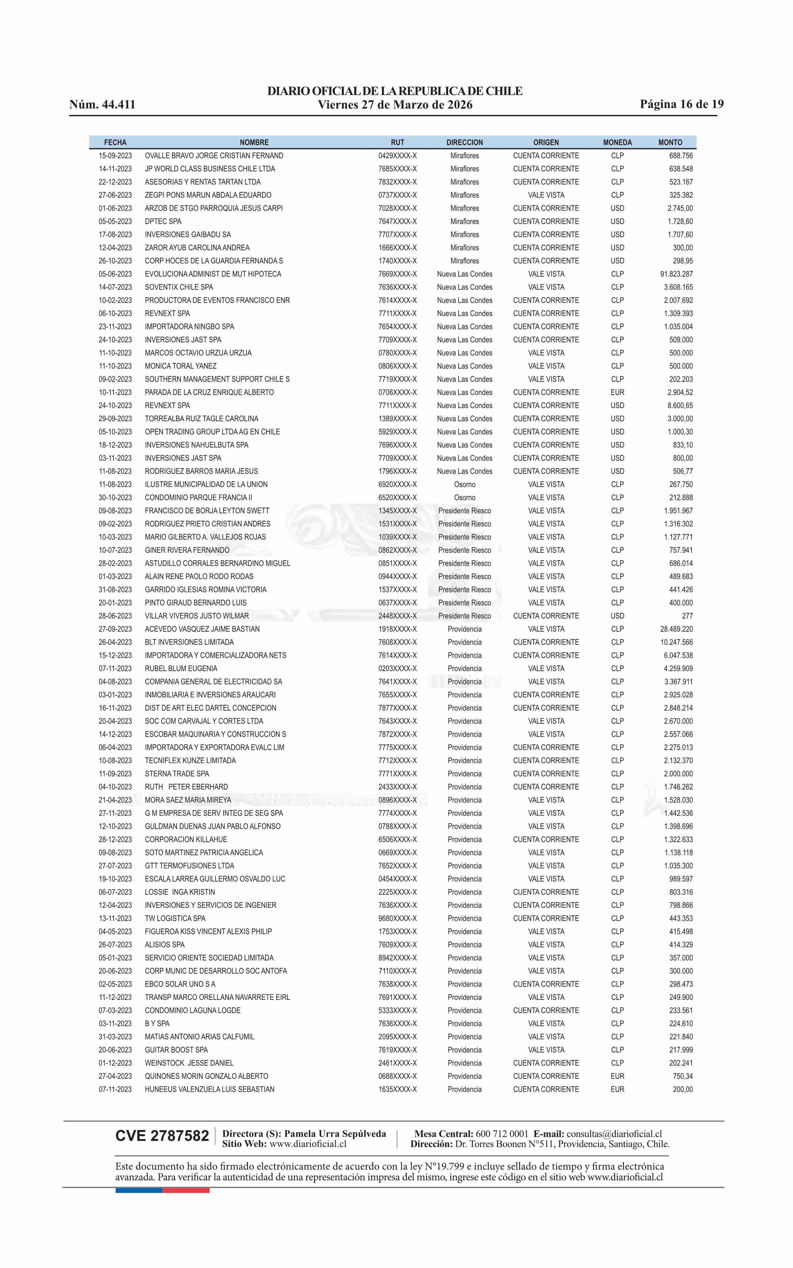 | Fuente: | Diario Oficial Edición Electrónica (Diario Oficial de Chile - 4 Avisos Destacados) | Página(s): | 13-31 |