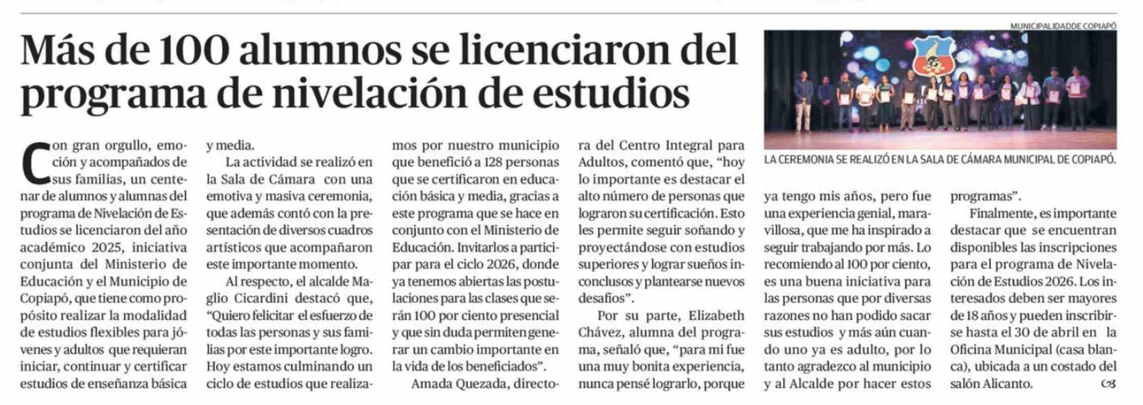 Más de 100 alumnos se licenciaron del programa de nivelación de estudios