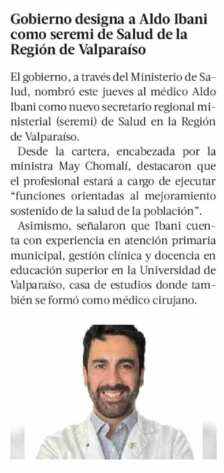 Gobierno designa a Aldo Ibani como seremi de Salud de la Región de Valparaíso