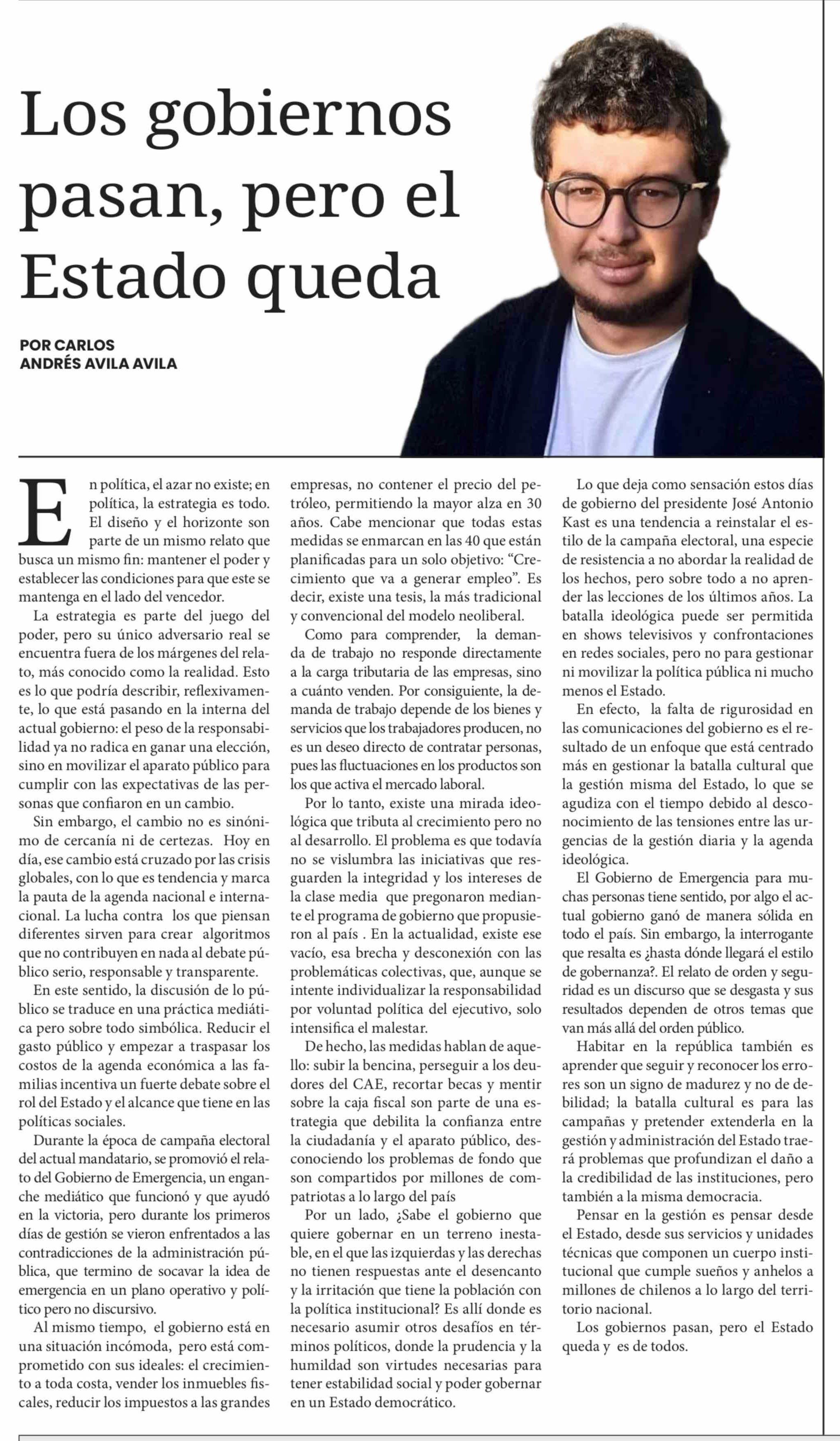 Columnas de Opinión: Los gobiernos pasan, pero el Estado queda
