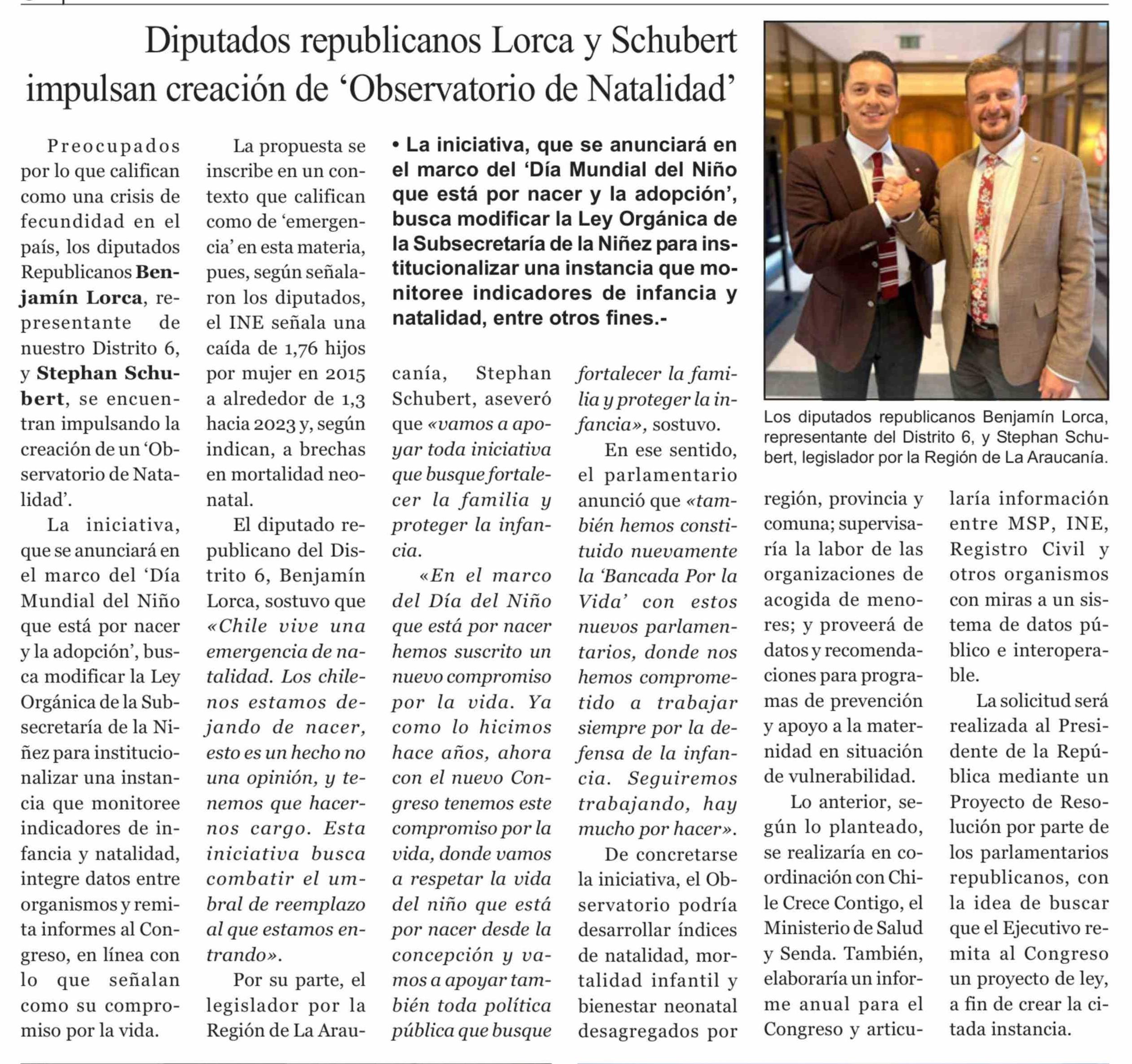 Diputados republicanos Lorca y Schubert impulsan creación de 'Observatorio de Natalidad'
