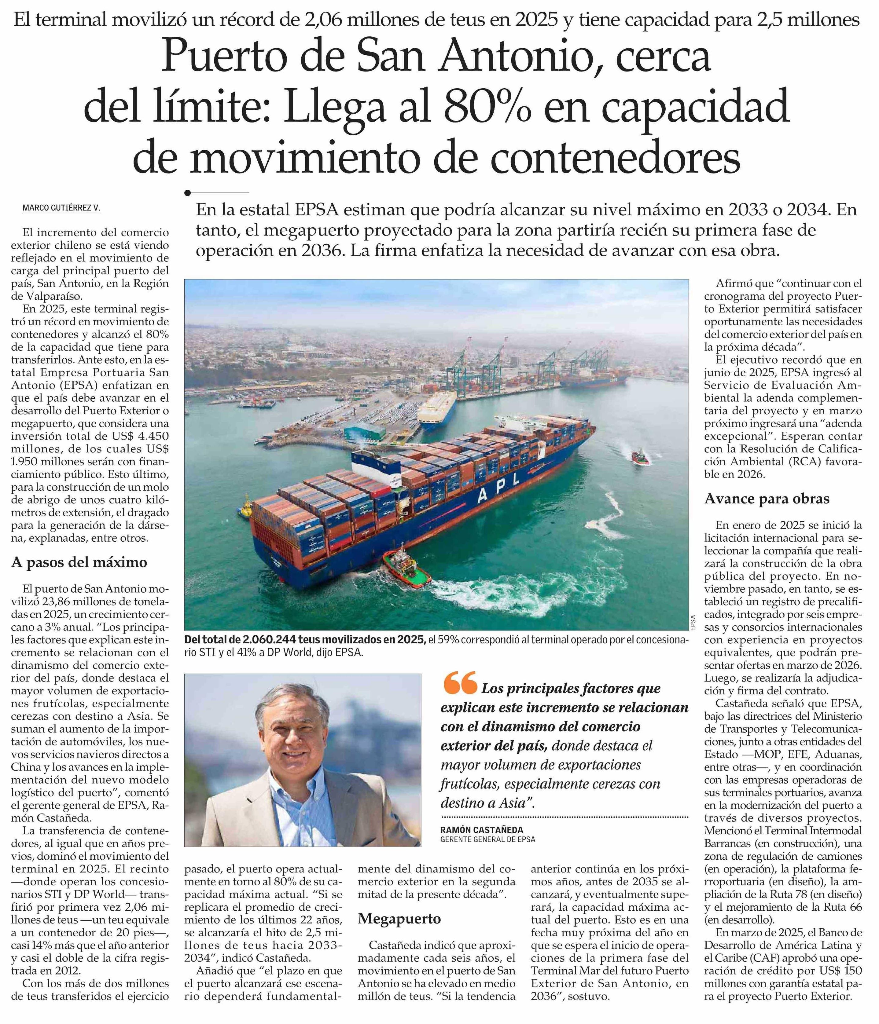 Puerto de San Antonio, cerca del límite: Llega al 80% en capacidad de movimiento de contenedores