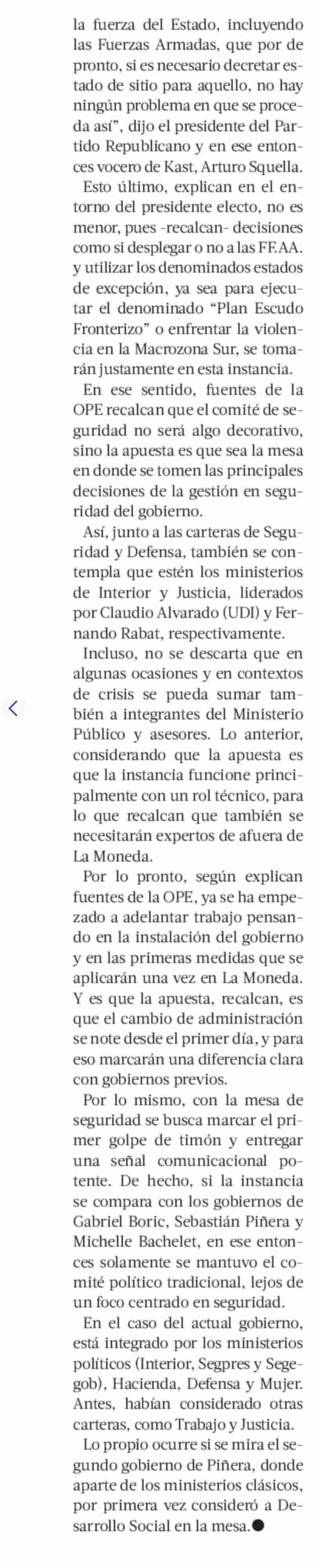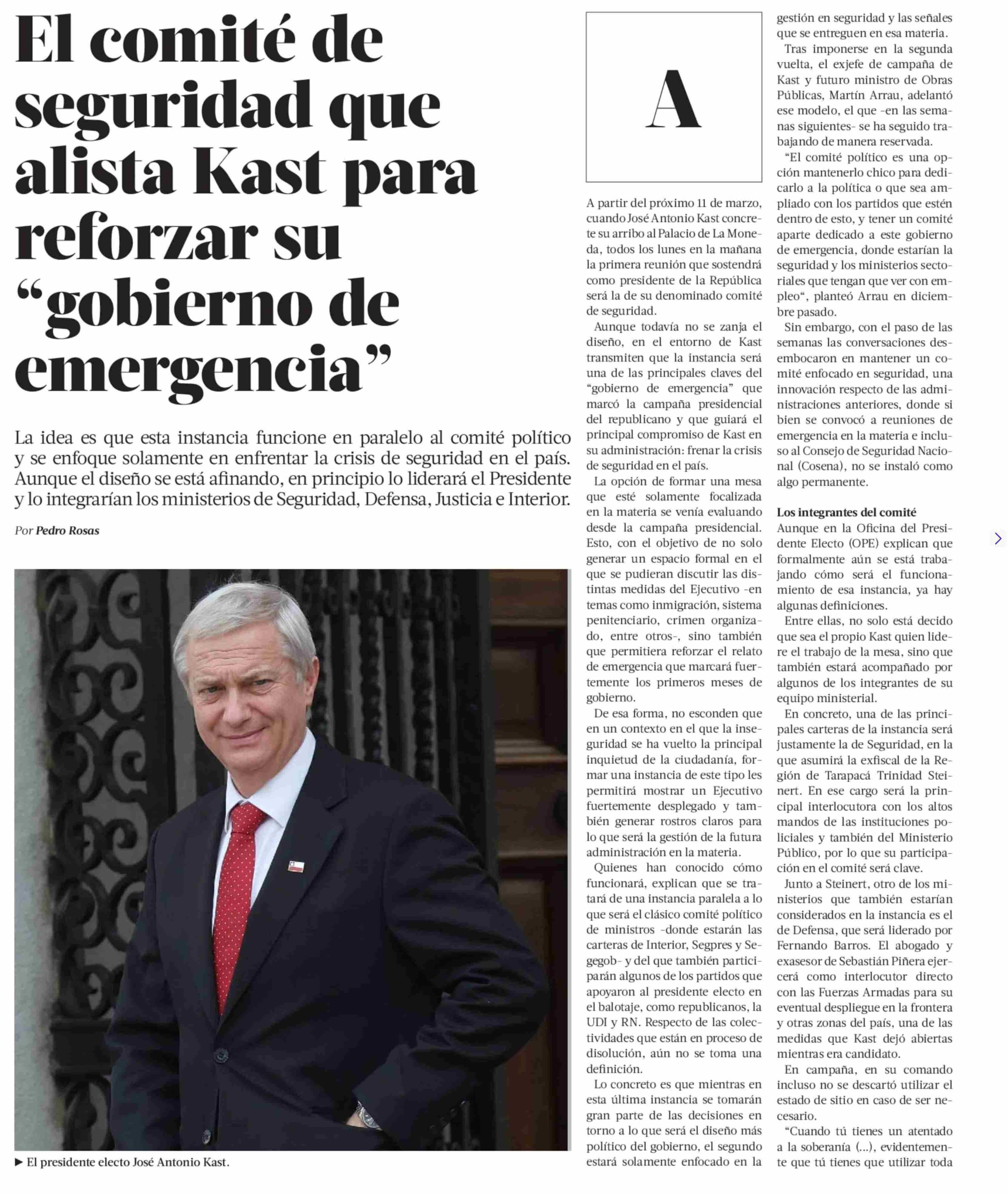 El comité de seguridad que alista Kast para reforzar su "gobierno de emergencia"